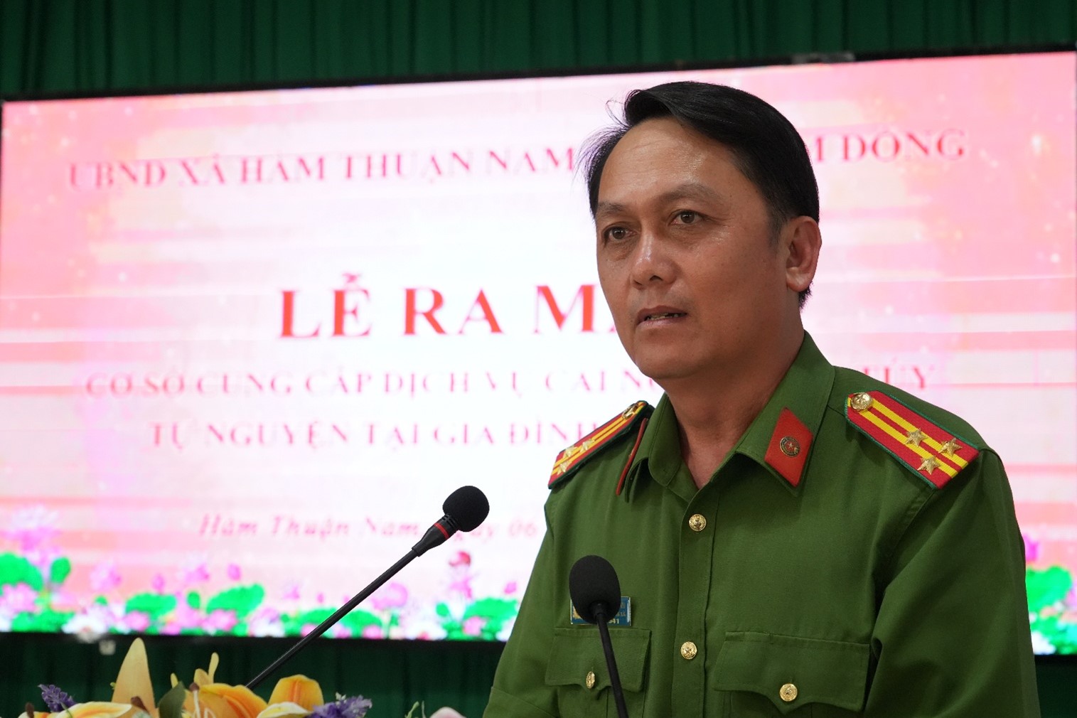 Tại buổi lễ, thừa ủy quyền của Giám đốc Công an tỉnh, Thượng tá Nguyễn Văn Tới - Trưởng Công an xã đã công bố quyết định công nhận Trạm Y tế xã Hàm Thuận Nam đủ điều kiện cung cấp dịch vụ cai nghiện ma túy tự nguyện tại gia đình, cộng đồng trên địa bàn.