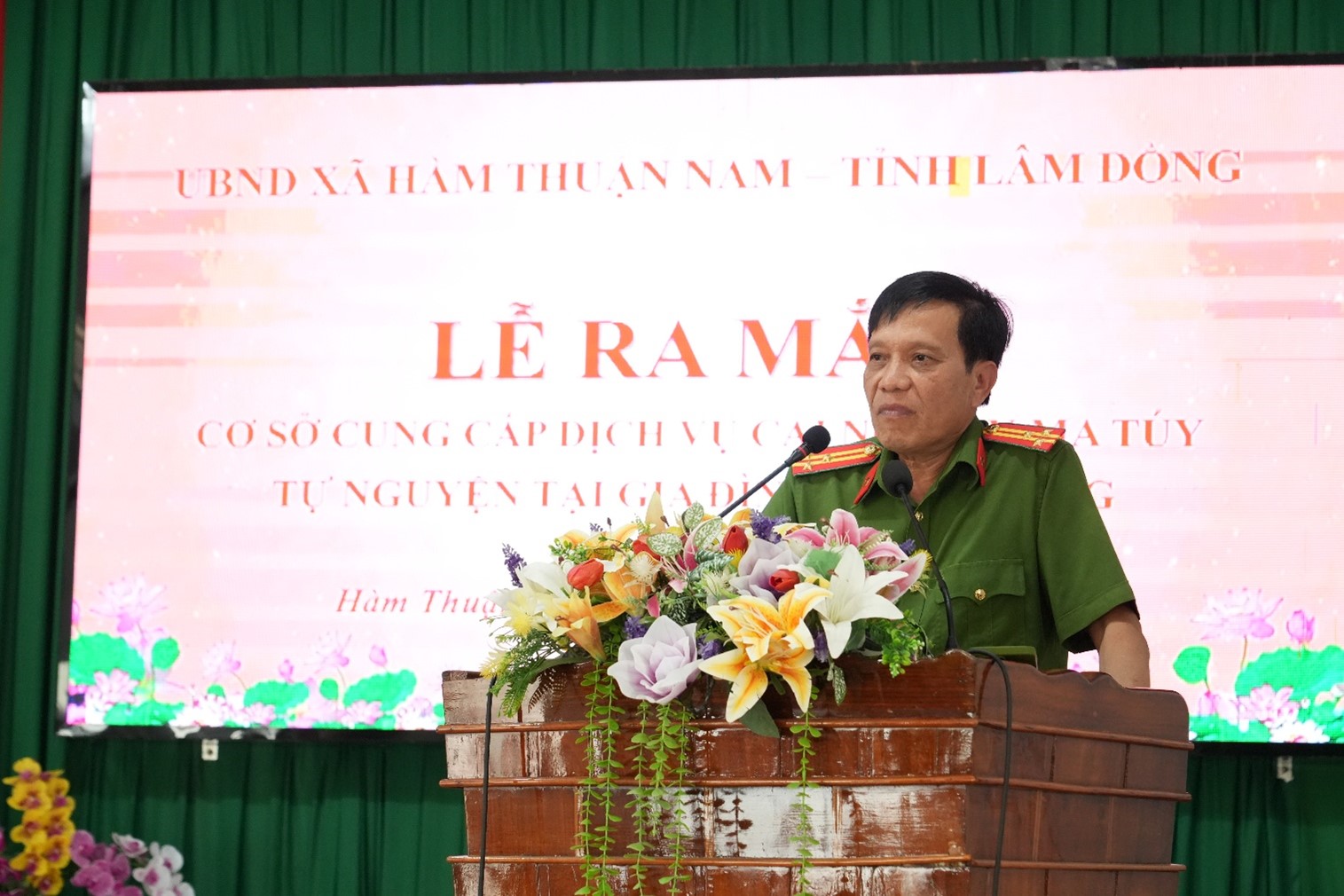 Phát biểu chỉ đạo tại buổi lễ, Thượng tá Võ Tiến Phát - Phó Trưởng Phòng Cảnh sát điều tra tội phạm về ma túy Công an tỉnh Lâm Đồng nhấn mạnh, việc ra mắt cơ sở là bước đi cần thiết, phù hợp với yêu cầu thực tiễn và chủ trương nhân văn của Đảng, Nhà nước trong công tác cai nghiện ma túy hiện nay. Đồng chí cũng đề nghị cấp ủy, chính quyền địa phương, Công an xã, Trạm Y tế xã và các tổ chức đoàn thể tiếp tục phối hợp chặt chẽ trong rà soát, quản lý người nghiện, người sử dụng trái phép chất ma túy; tổ chức tư vấn, hỗ trợ điều trị cắt cơn, theo dõi sức khỏe, quản lý sau cai; đẩy mạnh tuyên truyền về tác hại và vận động nhân dân tham gia phòng, chống ma túy.