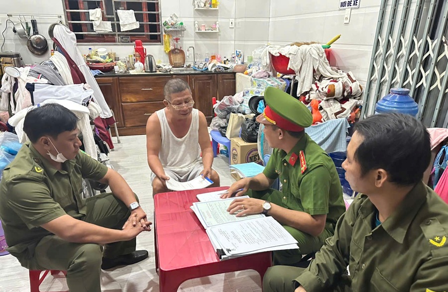 Cán bộ Công an xã Phan Rí Cửa kiểm tra cư trú trên địa bàn