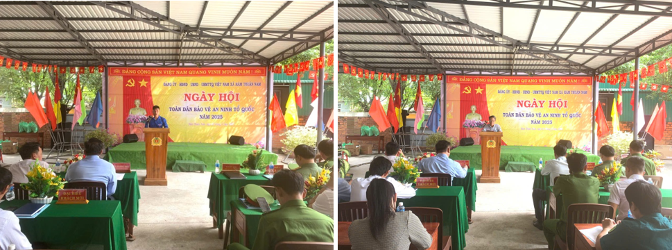 Tham dự và chỉ đạo Ngày hội, có đồng chí Lê Hoàng Nhã – Phó Bí thư Thường trực Đảng ủy, Chủ tịch HĐND xã; đồng chí Nguyễn Trãi – Phó Chủ tịch UBND xã; đồng chí Thượng tá Nguyễn Văn Tới – Trưởng Công an xã, Phó Trưởng Ban Thường trực Ban Chỉ đạo xã; đồng chí Phạm Văn Hòa – Chủ tịch Ủy ban MTTQ Việt Nam xã; đồng chí Thiếu tá Nguyễn Ngọc Thạch – đại diện phòng Tham mưu - Công an tỉnh Lâm Đồng cùng các đồng chí Phó Trưởng Ban, thành viên Ban Chỉ đạo xã, Bí thư, trưởng các thôn, chỉ huy và cán bộ Công an xã, lực lượng bảo vệ ANTT cơ sở và đông đảo Nhân dân xã Hàm Thuận Nam.