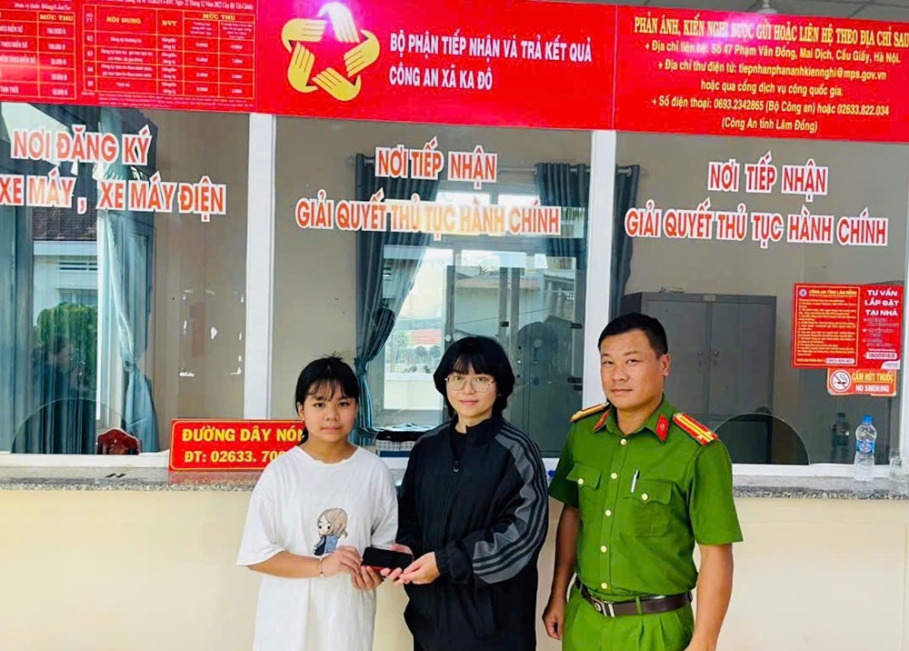 Vào khoảng 17h00 ngày 04/8/2025, em Đào Nguyễn Khánh Nhi (SN 2014) hiện là học sinh lớp 6A4 - Trường THCS Ka Đô đã đến Trụ sở của Công an xã Ka Đô để trình báo việc nhặt được một chiếc điện thoại tại khu vực gần Trường Tiểu học Ka Đô thuộc thôn Nghĩa Hiệp 1, xã Ka Đô, tỉnh Lâm Đồng. Do không biết ai là chủ nhân của chiếc điện thoại, em Nhi đã đạp xe đạp đến trụ sở Công an xã để giao nộp tài sản nhận được và nhờ lực lượng Công an hỗ trợ trả lại cho người đánh rơi.
