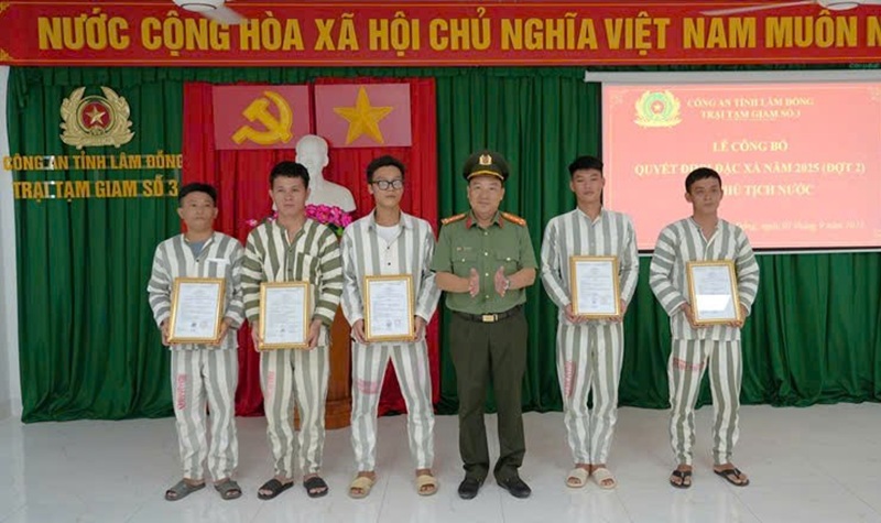 Đ/c Đại tá Trần Văn Mười, Phó Giám đốc Công an tỉnh Lâm Đồng trao quyết định đặc xá năm 2025 (đợt 2)