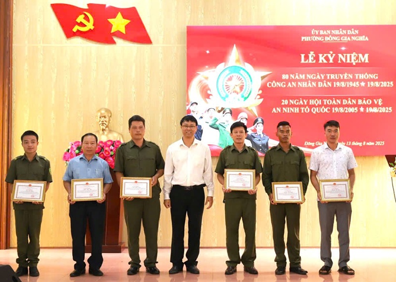 Lực lượng tham gia bảo vệ ANTT ở cơ sở được lãnh đạo UBND phường tặng Giấy khen