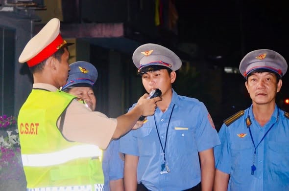 Lực lượng Cảnh sát giao thông kiểm tra nồng độ cồn với cán bộ, nhân viên làm việc tại nhà ga