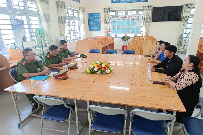 Công an xã làm việc, phối hợp với Ban Giám hiệu trường học