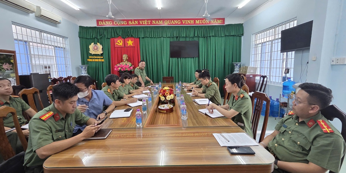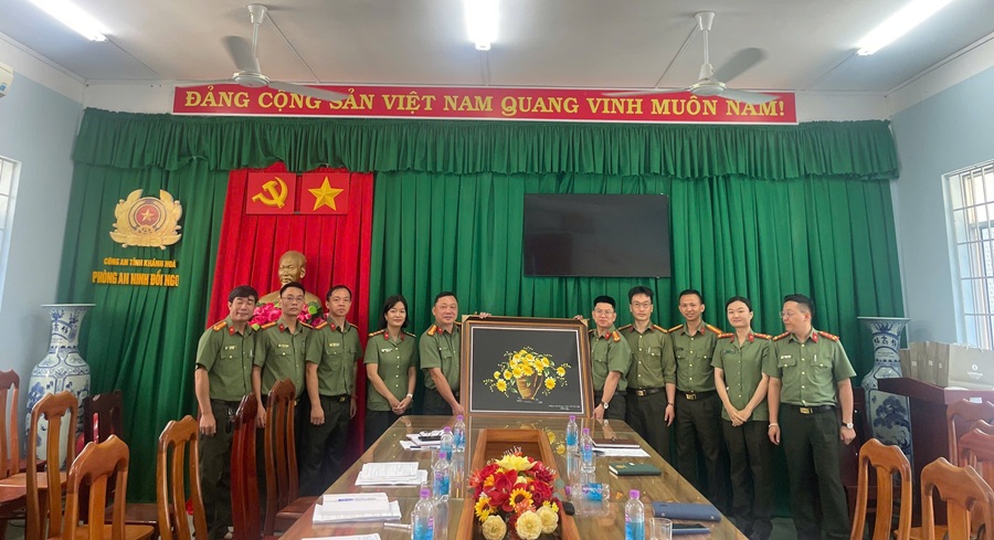 Cán bộ Phòng An ninh đối ngoại - Công an tỉnh Lâm Đồng và Phòng An ninh đối ngoại - Công an tỉnh Khánh Hòa tham dự buổi làm việc
