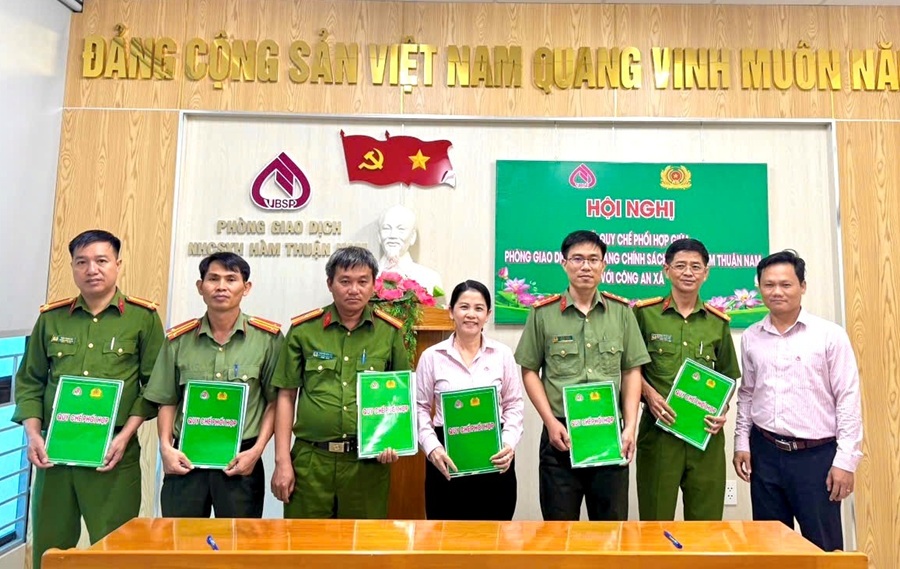 Đại diện Công an các đơn vị ký kết Quy chế phối hợp với NHCSXH Hàm Thuận Nam
