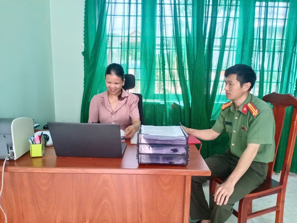 Đồng chí Trung tá Lương Văn Kéo – Tổ phó Tổ an ninh tiếp xúc, gặp gỡ đồng chí Nông Thị Uyển – Phó Chủ tịch UBMTTQ Việt Nam xã, Chủ tịch Hội phụ nữ xã