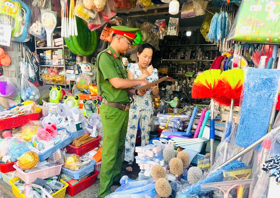 Công an xã D’Ran tuyên truyền cho các hộ kinh doanh trên các tuyến đường
