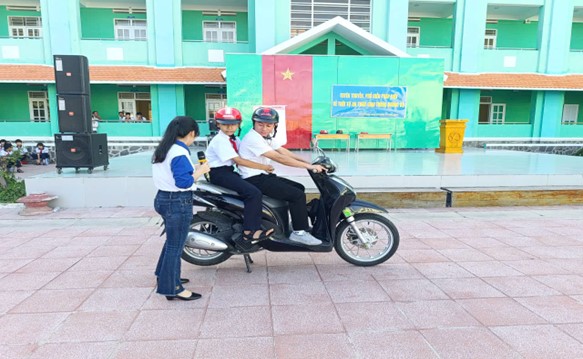 Buổi tuyên truyền diễn ra trong không khí sôi nổi, nội dung thiết thực và phù hợp với lứa tuổi học sinh. Các em được phổ biến tình hình tai nạn giao thông trên địa bàn; tìm hiểu các quy định cơ bản của Luật Giao thông đường bộ; hướng dẫn kỹ năng tham gia giao thông an toàn như: cách sang đường đúng luật, đi đúng phần đường, làn đường, không dàn hàng ngang; kỹ năng đội mũ bảo hiểm đạt chuẩn khi đi mô tô, xe gắn máy, xe đạp điện; thực hành lái xe an toàn qua hệ thống mô phỏng.