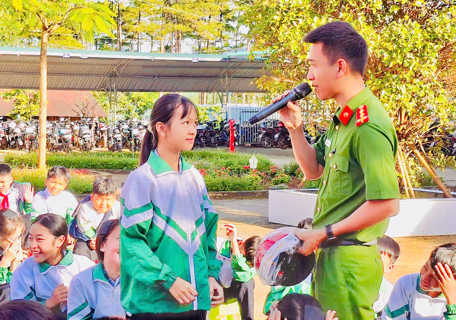 Xác định học sinh và phụ huynh là nhóm đối tượng quan trọng, lực lượng Công an xã đã trực tiếp tuyên truyền tại khu vực cổng trường học: phát tờ rơi, hướng dẫn các quy định cơ bản như đội mũ bảo hiểm đạt chuẩn khi tham gia giao thông; không sử dụng rượu, bia khi điều khiển phương tiện; không phóng nhanh, vượt ẩu, chở quá số người quy định. Qua đó nâng cao ý thức chấp hành pháp luật, xây dựng văn hóa giao thông an toàn từ mỗi gia đình.