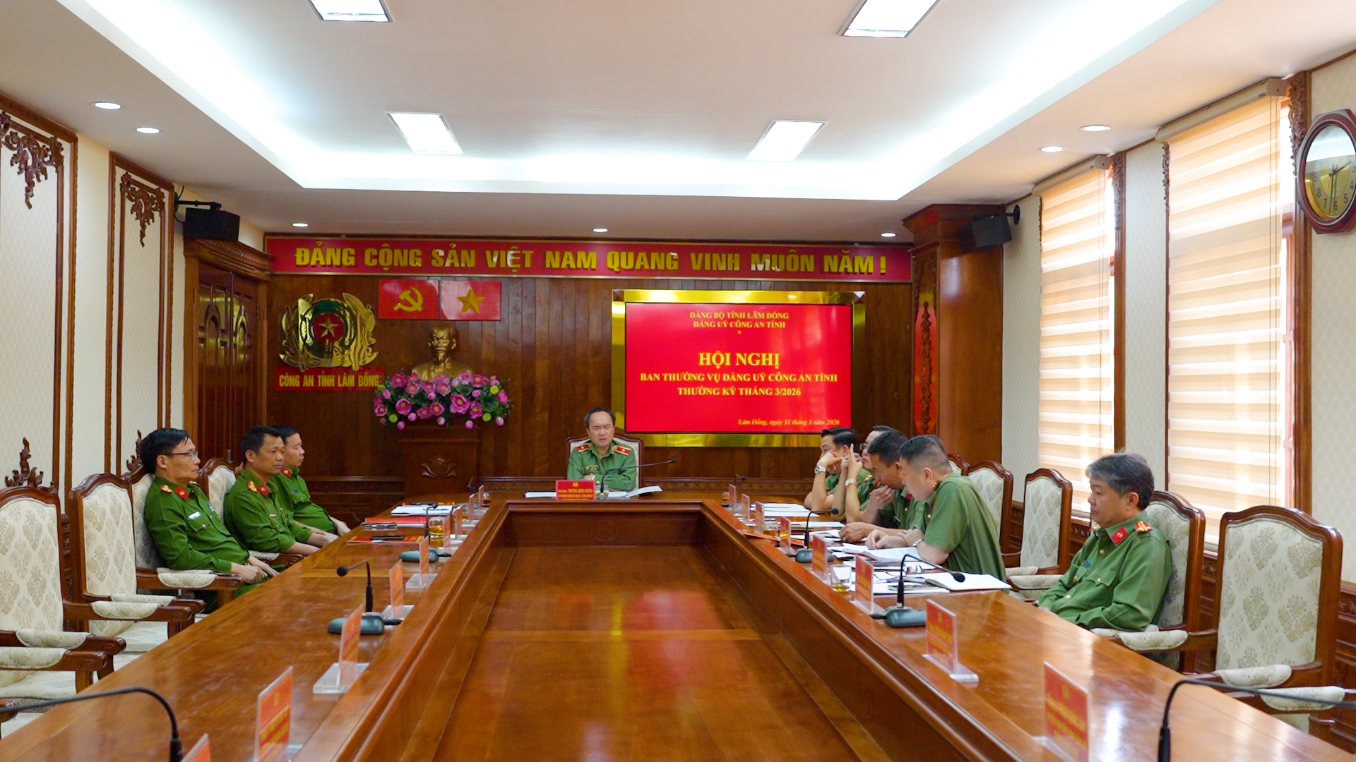 Quang cảnh họp Ban thường vụ Đảng ủy Công an tỉnh thường kỳ