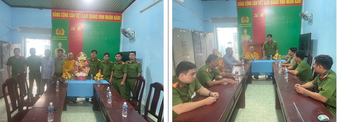 Đại đức Thích Tâm Thông – Trụ trì chùa Giác Trí xã Phan Rí Cửa thăm, chúc Tết cán bộ, chiến sĩ Công an xã Phan Rí Cửa