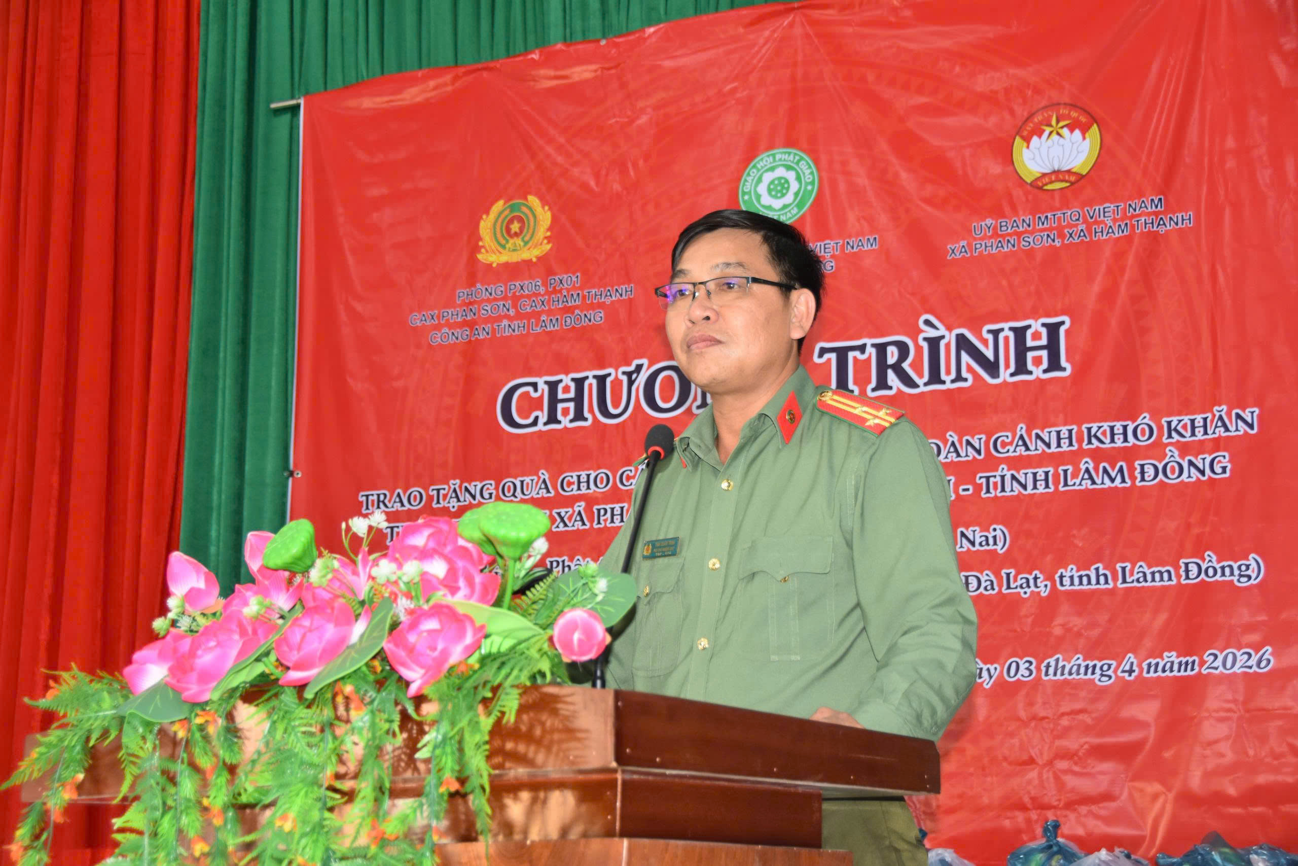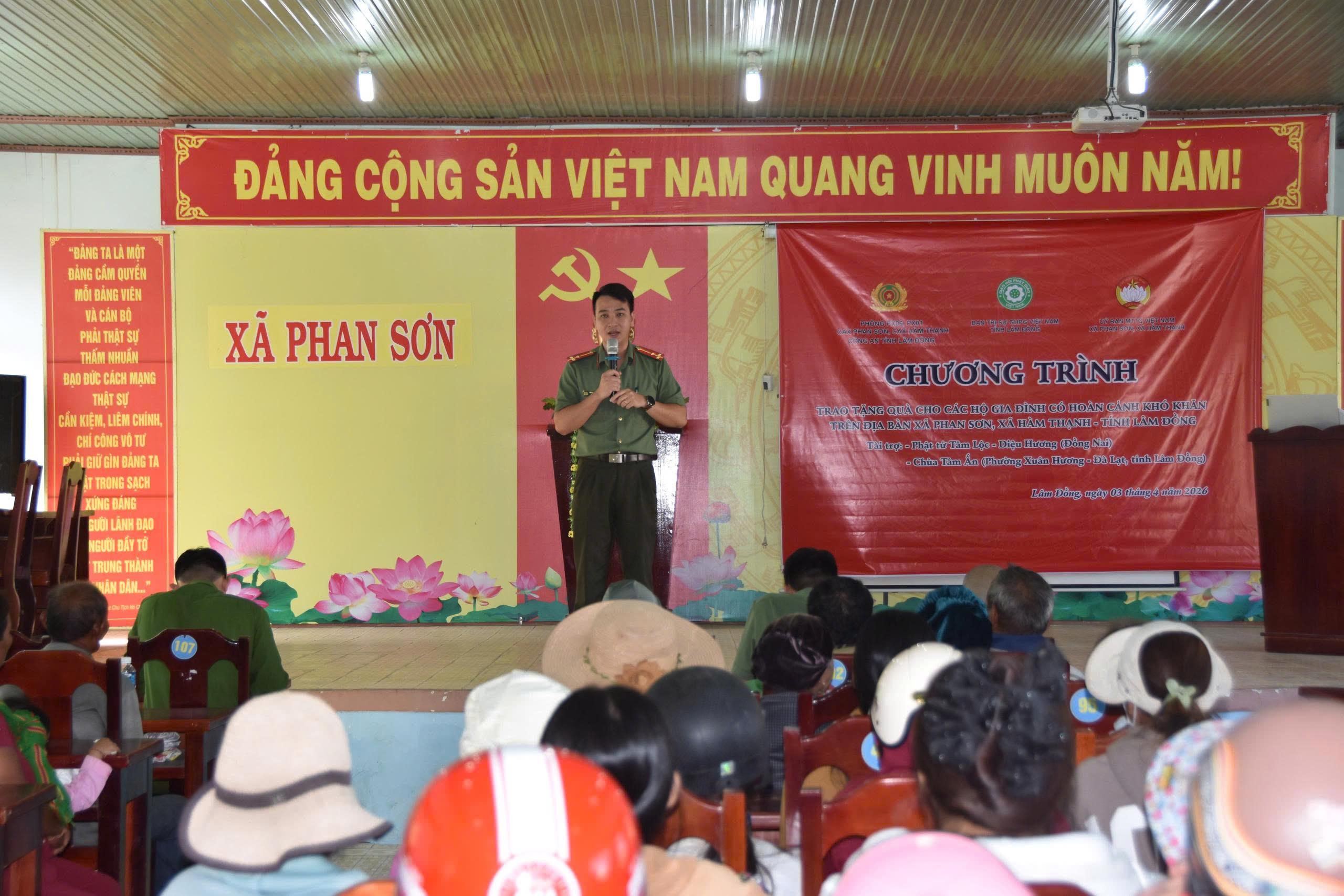 Tại chương trình, Thượng tá Thái Xuân Trinh, Phó Chủ nhiệm UBKT, Phó Thủ trưởng Cơ quan Ủy ban Kiểm tra Đảng ủy Công an tỉnh chia sẻ: Thời gian qua, đơn vị luôn xác định những hoạt đông hướng về cơ sở, chăm lo đời sống nhân dân vùng sâu, vùng xa, vùng đồng bào dân tộc thiểu số là nhiệm vụ thường xuyên, lâu dài. Trên cơ sở đó, đơn vị đã chủ động phối hợp với cấp ủy, chính quyền địa phương và các nhà tài trợ triển khai nhiều hoạt động thiết thực, hiệu quả.