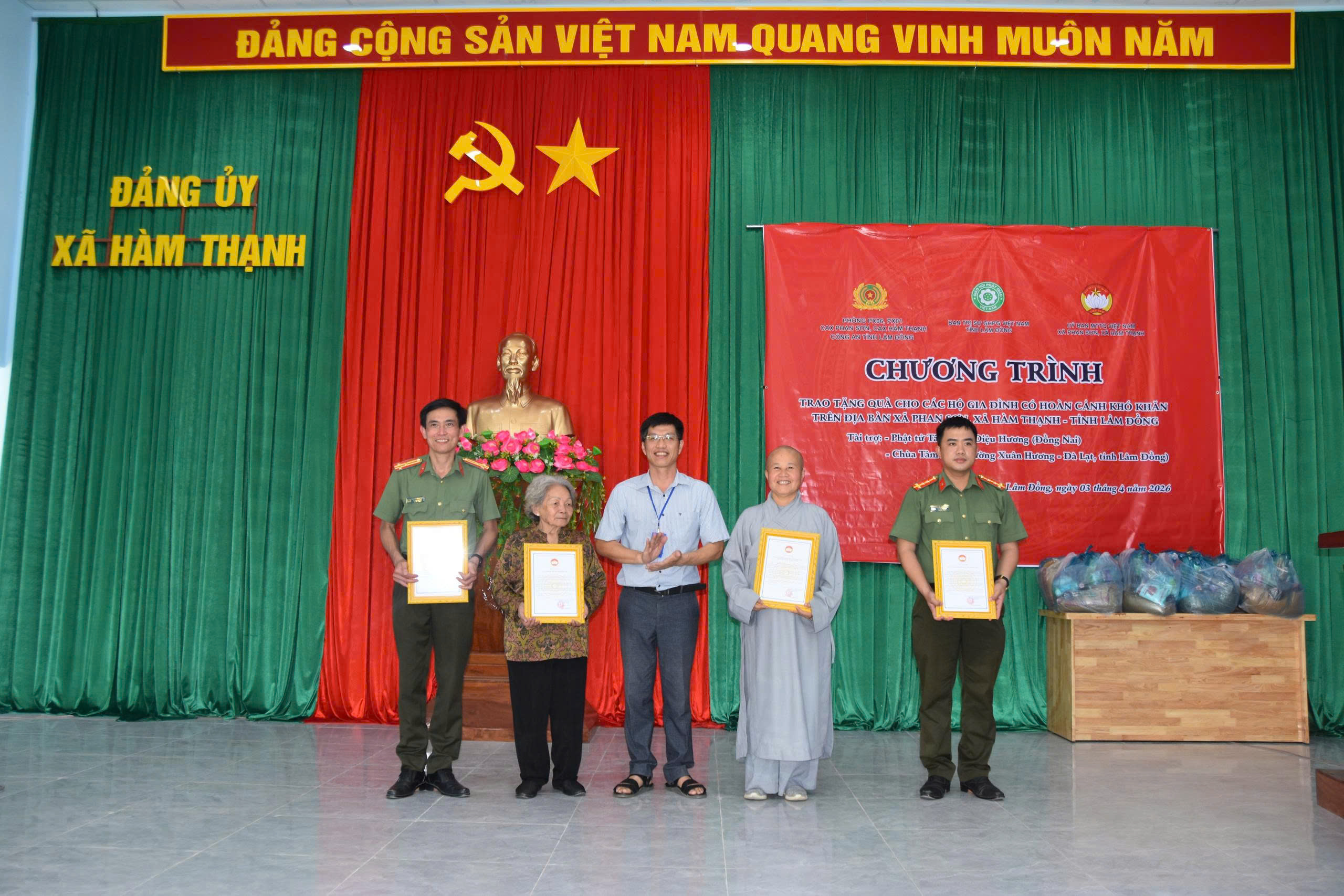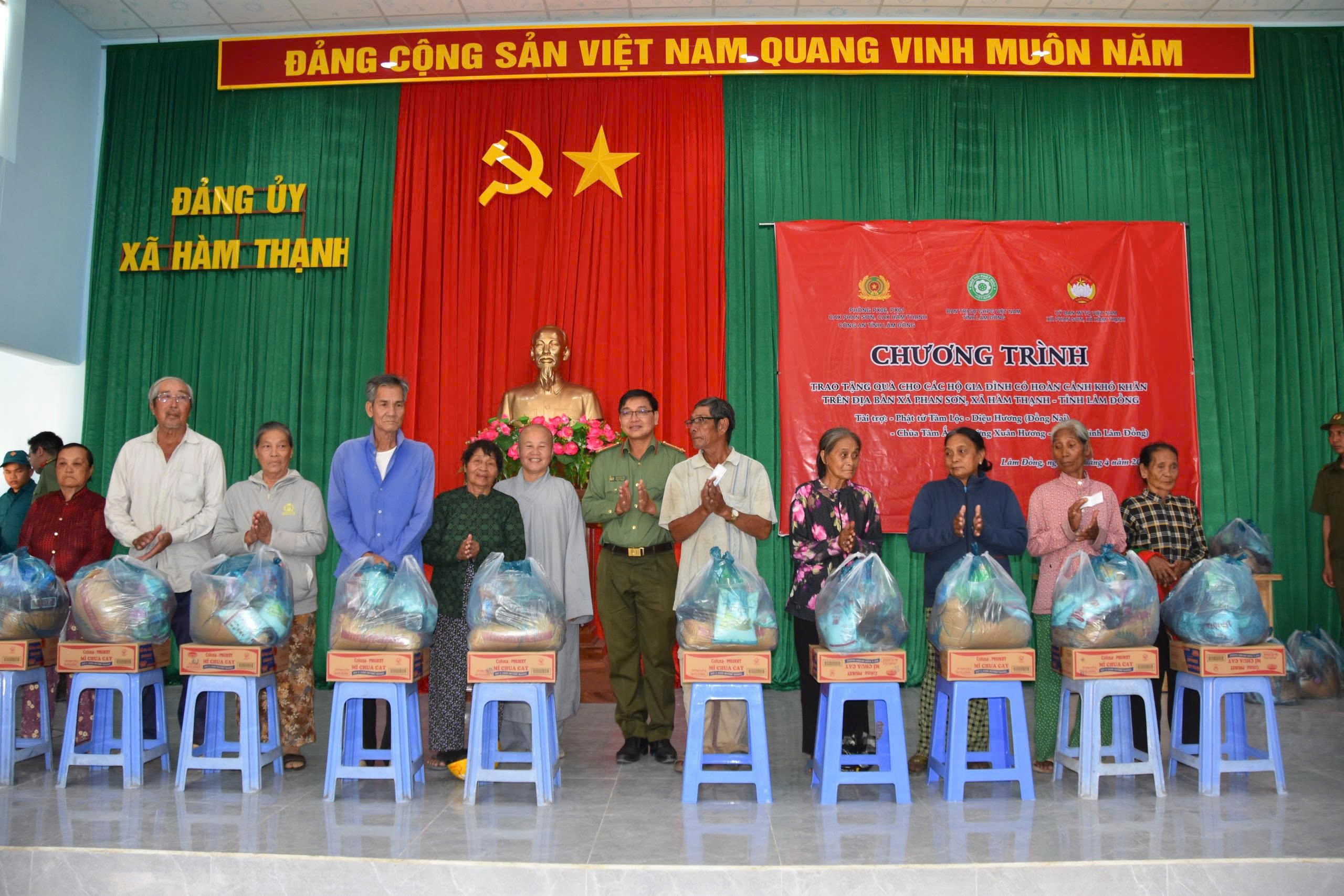 Đến tham dự chương trình có đại diện Lãnh đạo, cán bộ chiến sĩ các đơn vị Cơ quan Ủy ban kiểm tra Đảng ủy Công an tỉnh, Phòng Tổ chức cán bộ, đại diện chính quyền địa phương, đại diện chùa Tâm Ấn, Xuân Hương – Đà Lạt và gần 1000 hộ gia đình chính sách đang sinh sống trên địa bàn.