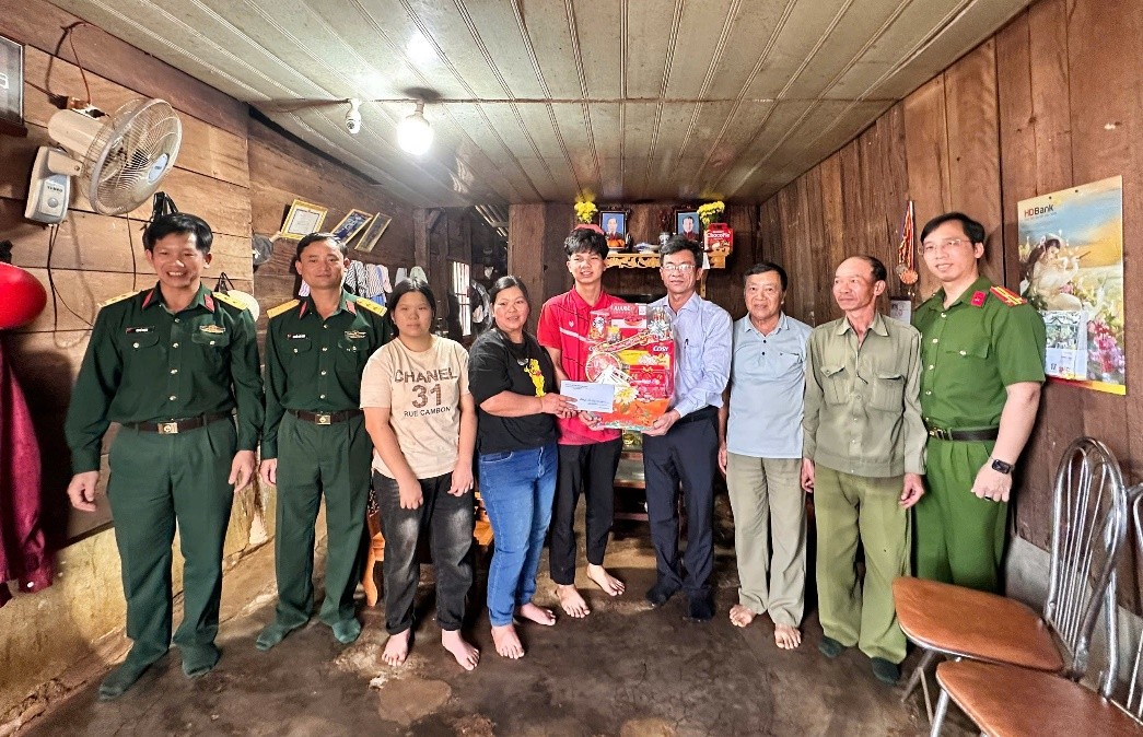 Các đoàn công tác đã trực tiếp đến thăm, trao quà cho 12 công dân chuẩn bị lên đường nhập ngũ, trong đó có 03 công dân thực hiện nghĩa vụ tham gia Công an nhân dân gồm: Dương Văn Nguyên (SN 2006) thường trú tại TDP 5, phường Đông Gia Nghĩa, tỉnh Lâm Đồng; Nguyễn Duy Dương (SN 2006) thường trú tại TDP Srê Ú, phường Đông Gia Nghĩa, tỉnh Lâm Đồng và Ngô Xuân Đức (SN 2006) thường trú tại TDP Đồng Tiến, phường Đông Gia Nghĩa, tỉnh Lâm Đồng.