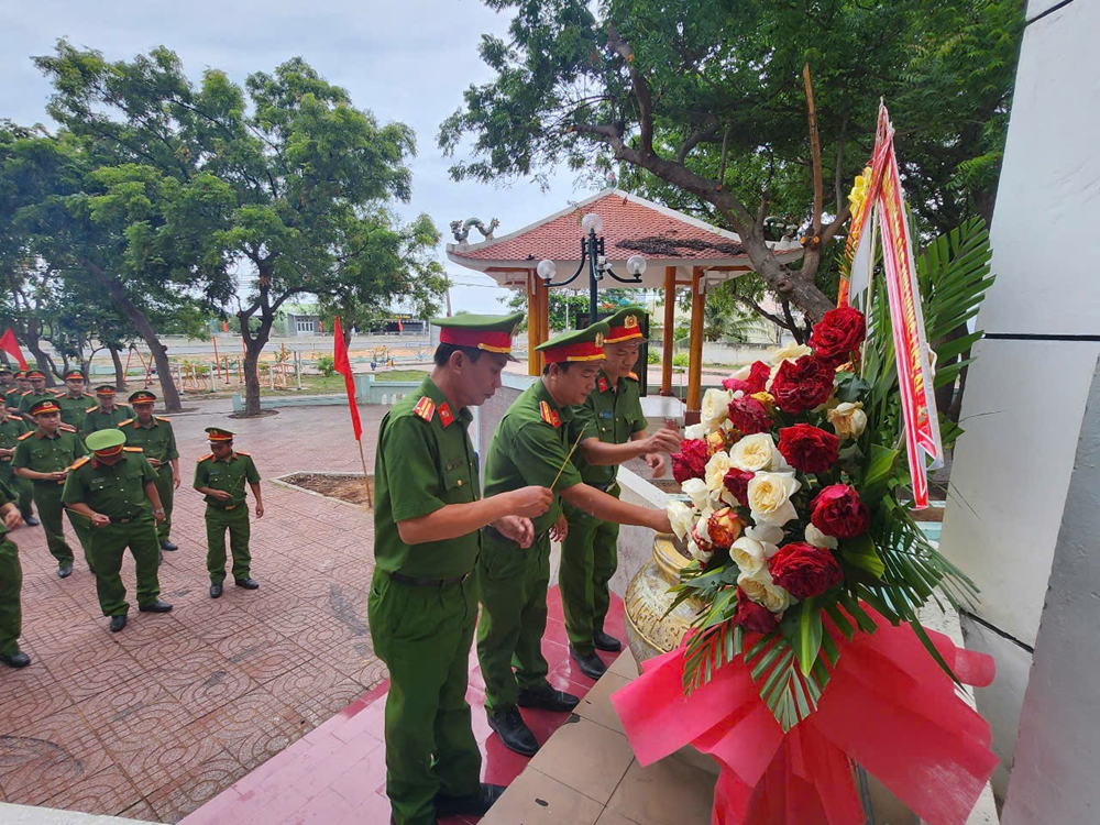 Tập thể chỉ huy, cán bộ, chiến sĩ Công an xã Vĩnh Hảo đã kính cẩn đặt vòng hoa: “Đời đời nhớ ơn các Anh hùng liệt sĩ”