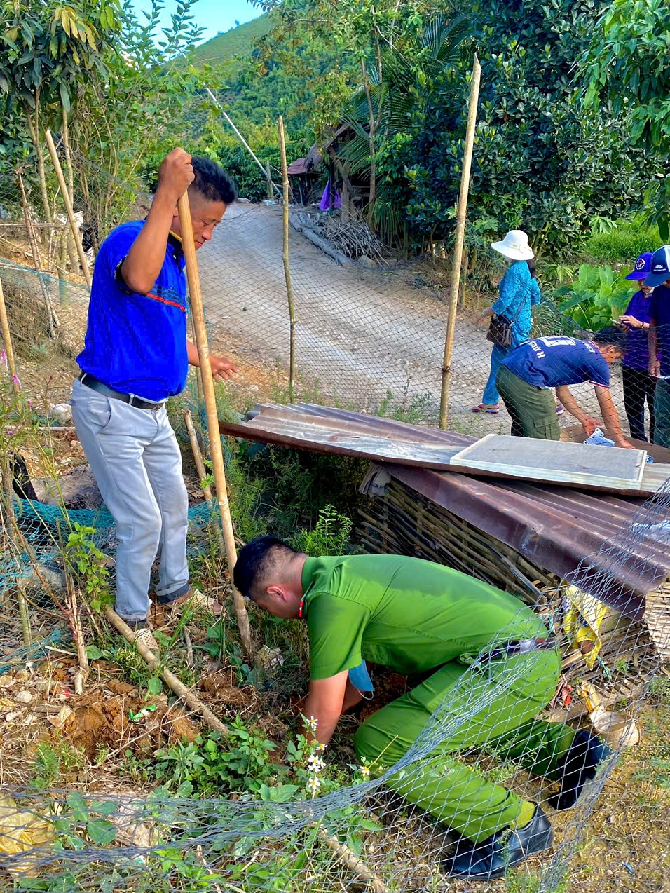 Đồng chí Bí thư Đoàn Công an xã Quảng Hòa cùng người dân đào hố dựng đèn đường