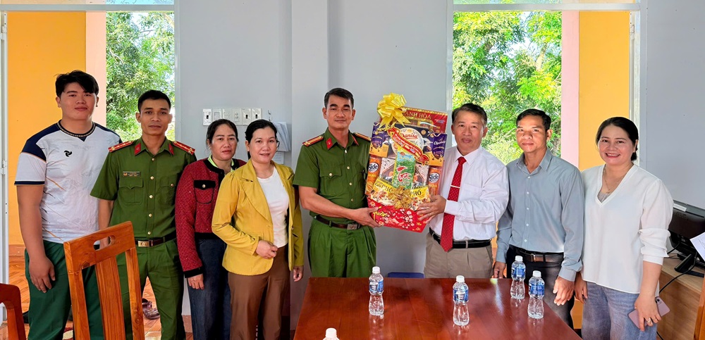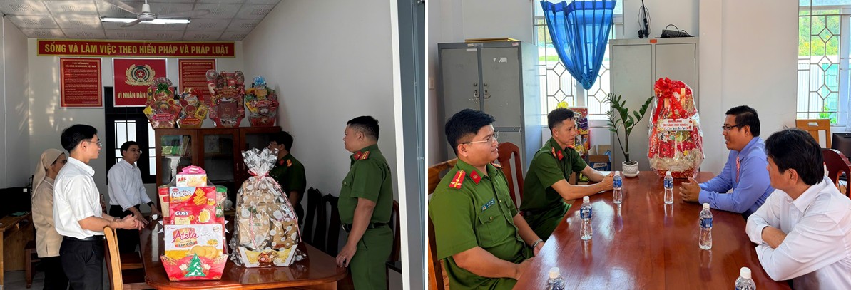 Đại diện các vị chức sắc tôn giáo thăm và chúc Tết tại trụ sở Công an xã Đồng Kho.