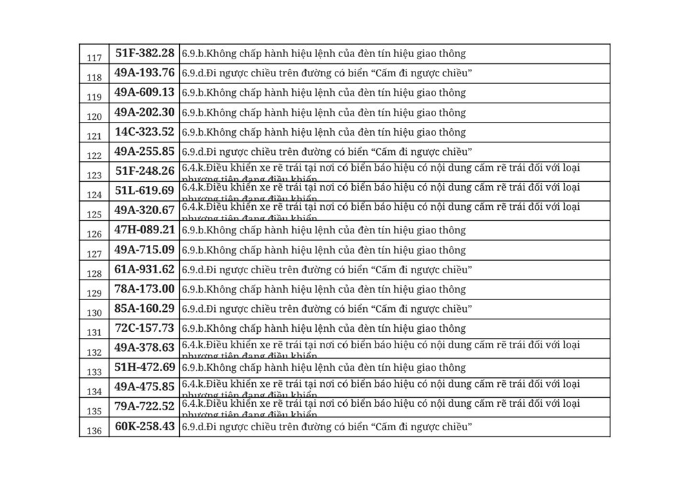 Căn cứ kết quả ghi nhận phương tiện vi phạm giao thông đường bộ từ ngày 01/02/2025 đến ngày 15/3/2026. Phòng Cảnh sát Giao thông - Công an tỉnh Lâm Đồng thông báo danh sách phương tiện, thời gian và hành vi cụ thể như sau: Phòng Cảnh sát giao thông