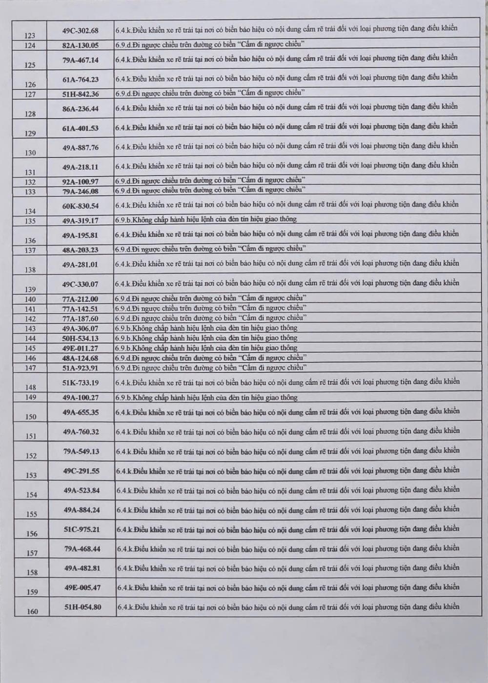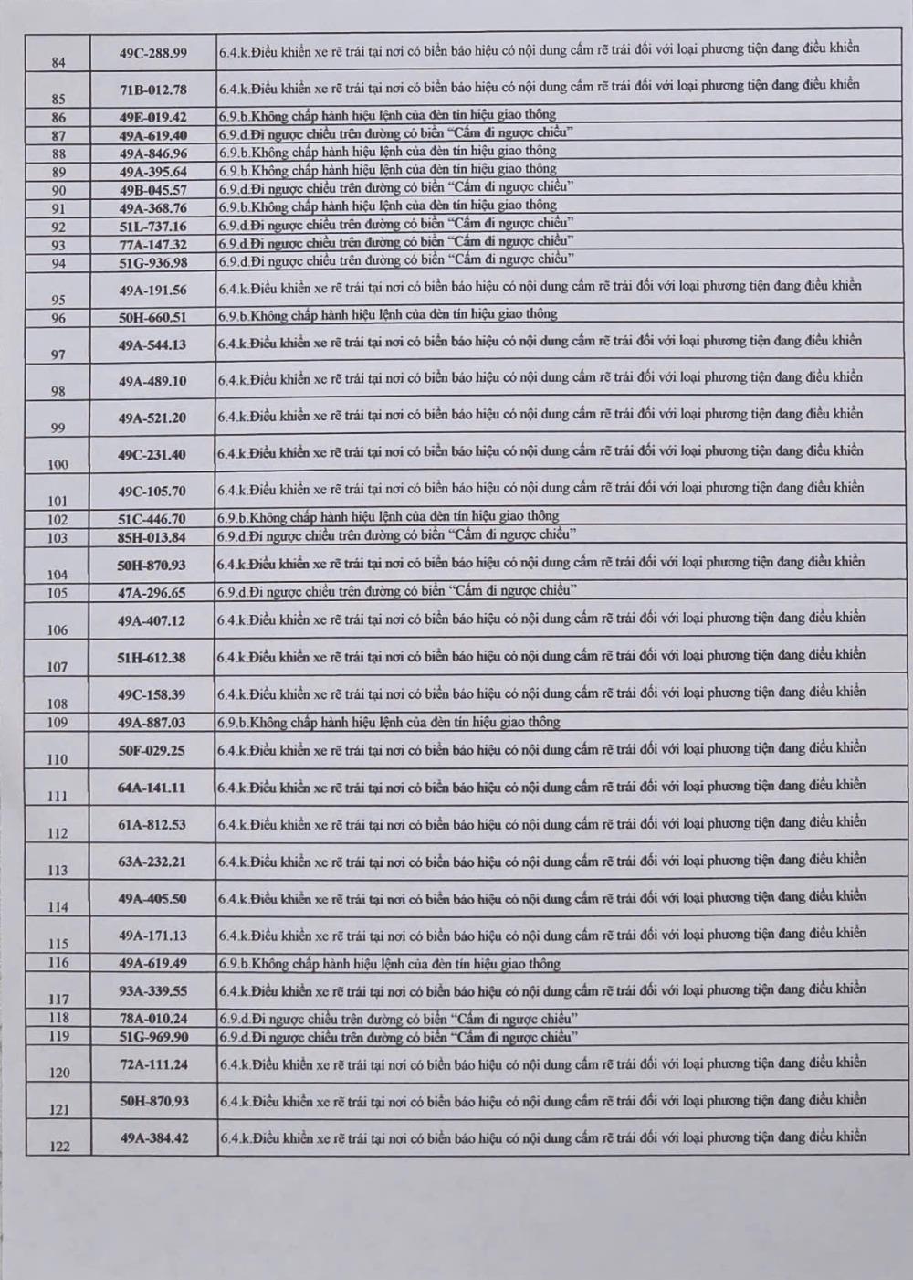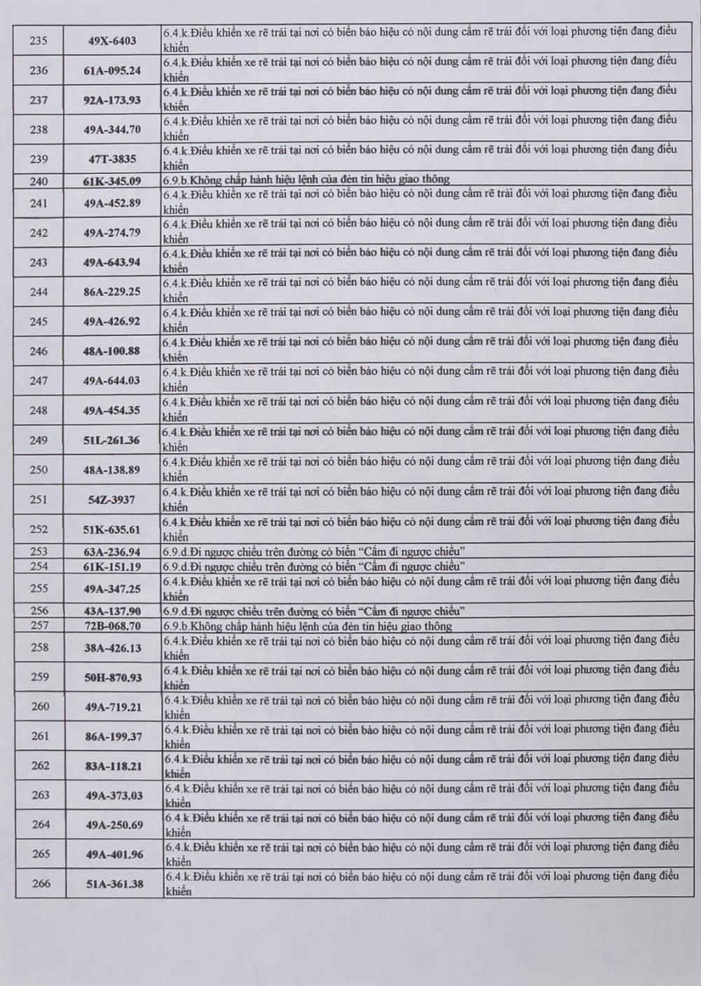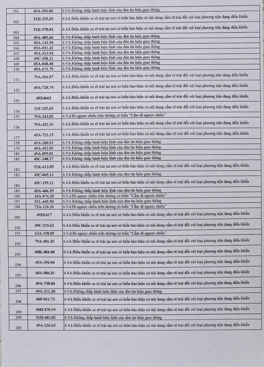 Căn cứ kết quả ghi nhận phương tiện vi phạm giao thông đường bộ trên địa bàn thành phố Đà Lạt - tỉnh Lâm Đồng từ ngày 15/6/2025 đến ngày 10/7/2025. Phòng Cảnh sát Giao thông thông báo danh sách phương tiện, thời gian và hành vi cụ thể như sau: