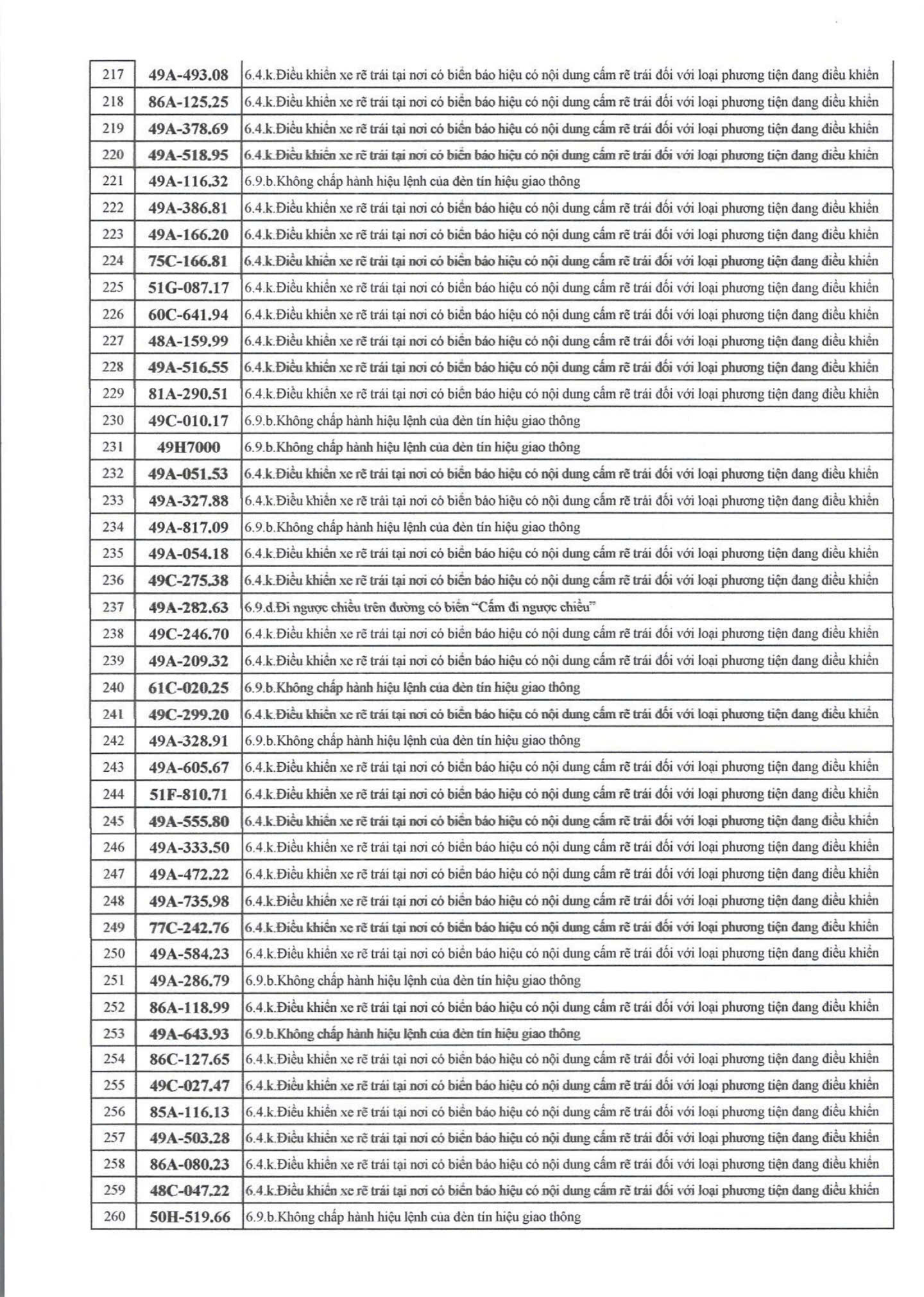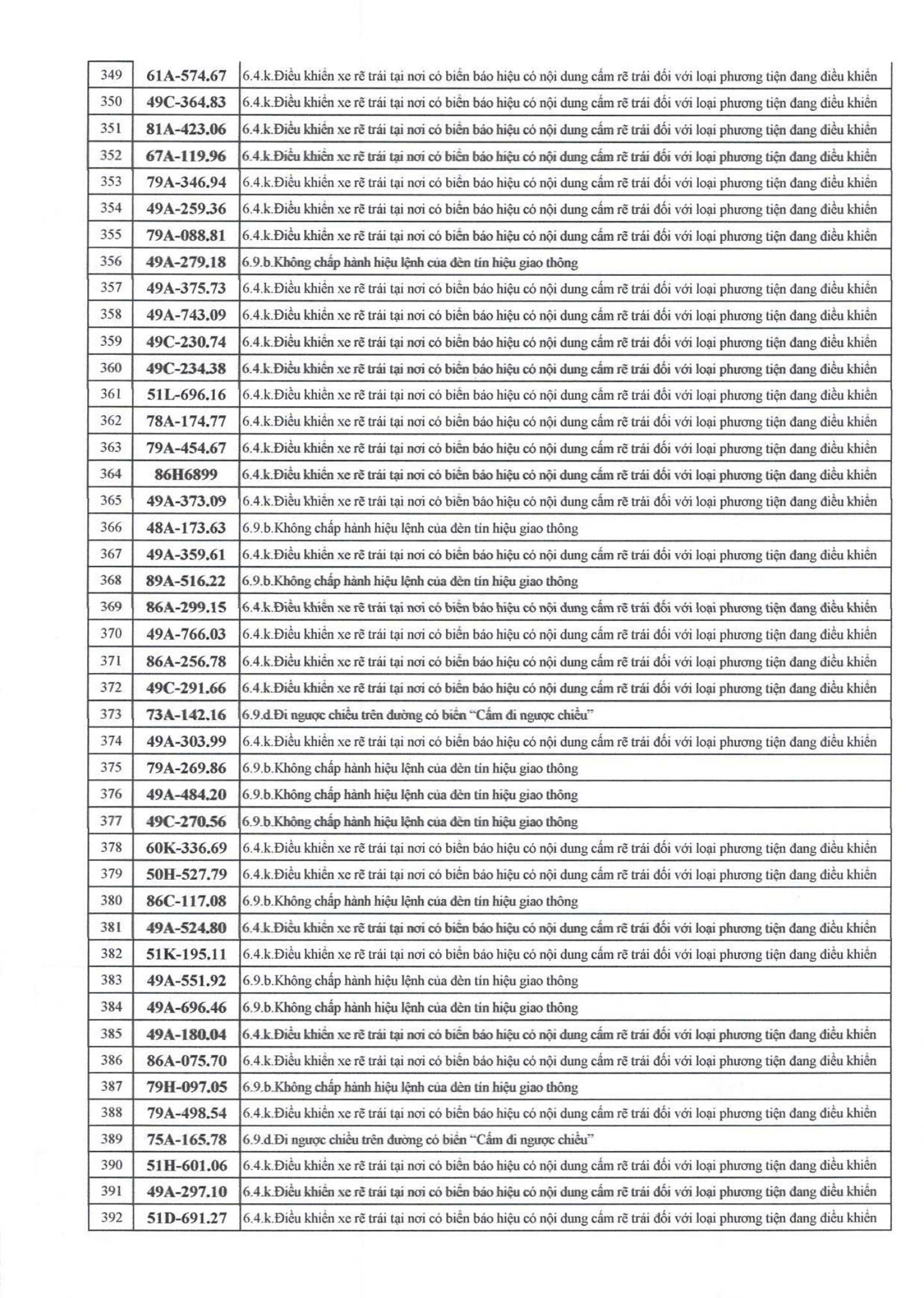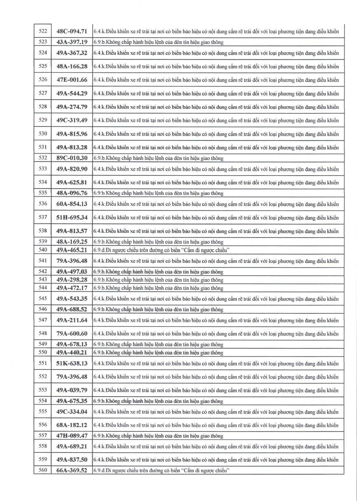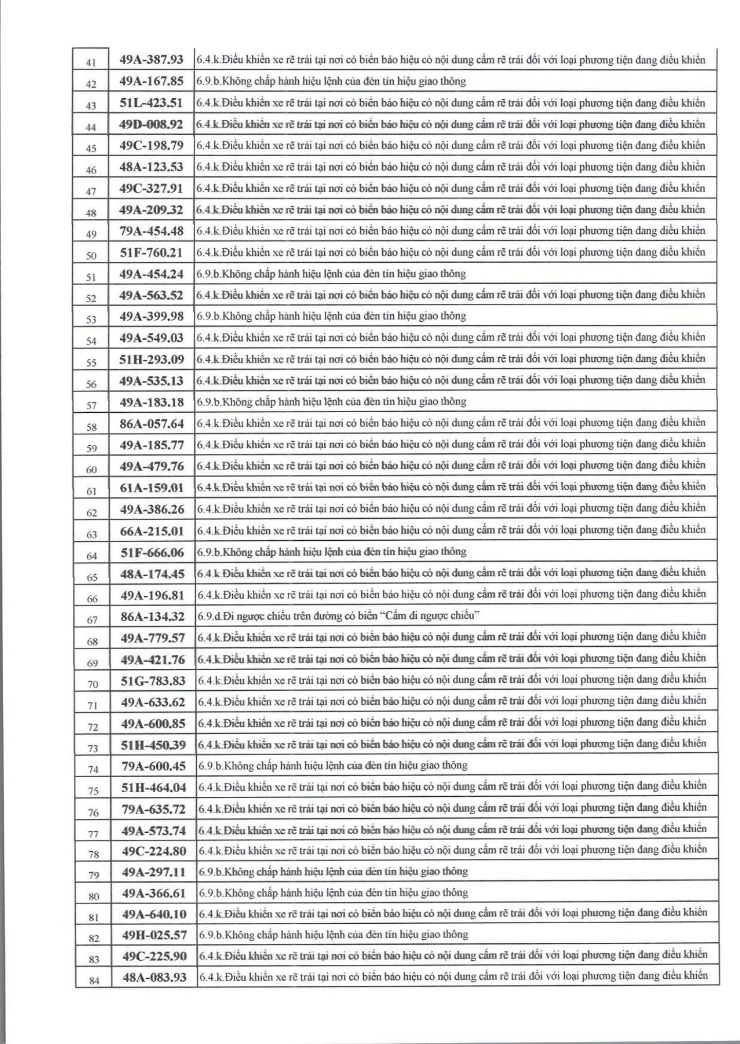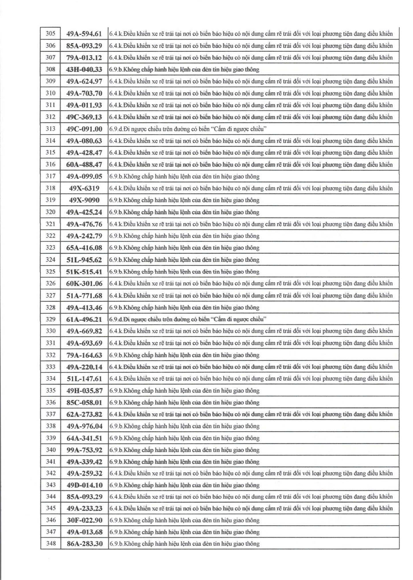 Căn cứ kết quả ghi nhận phương tiện vi phạm giao thông đường bộ từ ngày 21/9/2025 đến ngày 31/10/2025. Phòng Cảnh sát Giao thông thông báo danh sách phương tiện, thời gian và hành vi cụ thể như sau: Phòng Cảnh sát Giao thông