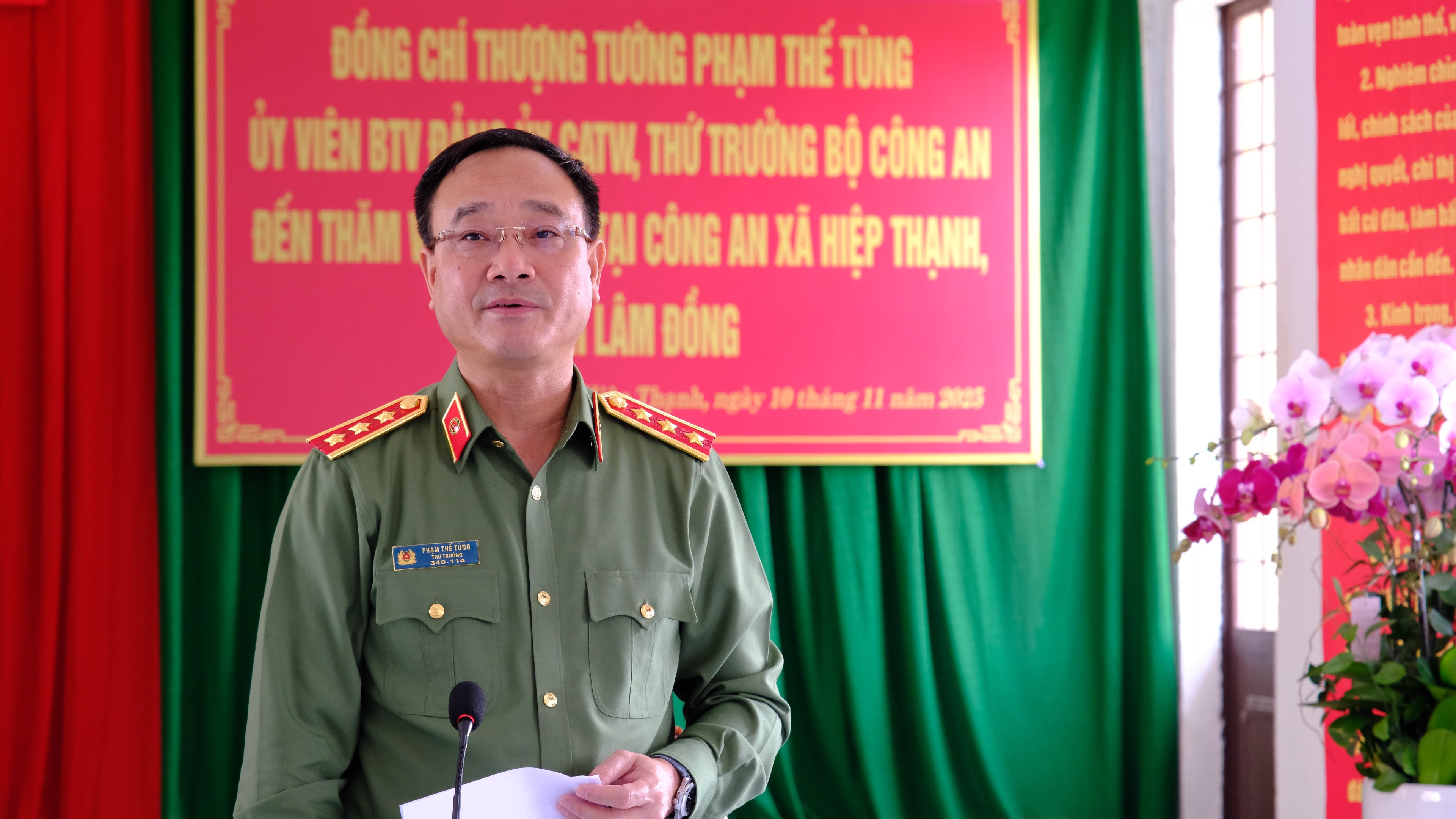 Chỉ đạo tại buổi làm việc, Thứ trưởng Phạm Thế Tùng đánh giá cao tinh thần trách nhiệm và nỗ lực của tập thể Công an xã Hiệp Thạnh trong bối cảnh đơn vị còn gặp nhiều khó khăn, nhất là giai đoạn địa phương triển khai mô hình chính quyền hai cấp. Theo Thứ trưởng, việc duy trì sự ổn định an ninh, trật tự ở cơ sở đòi hỏi lực lượng Công an xã phải thực sự chủ động, bản lĩnh và linh hoạt trong xử lý công việc hằng ngày.