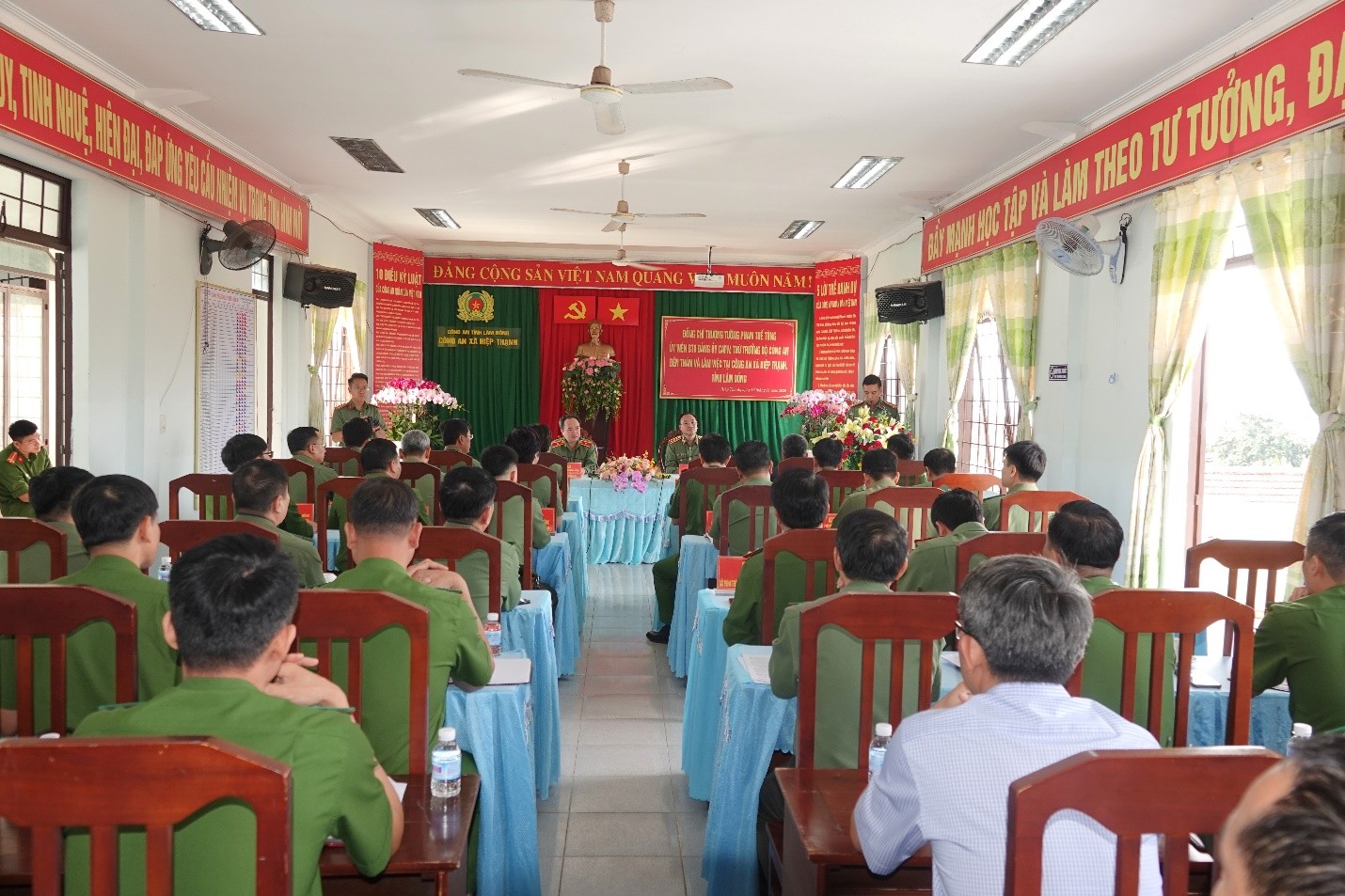 Phát biểu tại buổi làm việc, ông Lê Nguyên Hoàng, Bí thư Đảng ủy xã Hiệp Thạnh, bày tỏ sự trân trọng đối với sự quan tâm của lãnh đạo Bộ Công an và Công an tỉnh Lâm Đồng khi lựa chọn xã Hiệp Thạnh là điểm đến trong chương trình công tác. Ông cho rằng đây không chỉ là vinh dự của địa phương mà còn là nguồn động viên lớn đối với cấp ủy, chính quyền và Nhân dân trên địa bàn. Bí thư Đảng ủy xã khẳng định Đảng ủy xã Hiệp Thạnh sẽ tiếp tục lãnh đạo, chỉ đạo lực lượng Công an xã phát huy những kết quả đã đạt được, chủ động triển khai toàn diện các mặt công tác, góp phần giữ vững an ninh, trật tự, phục vụ nhiệm vụ phát triển kinh tế – xã hội của địa phương.