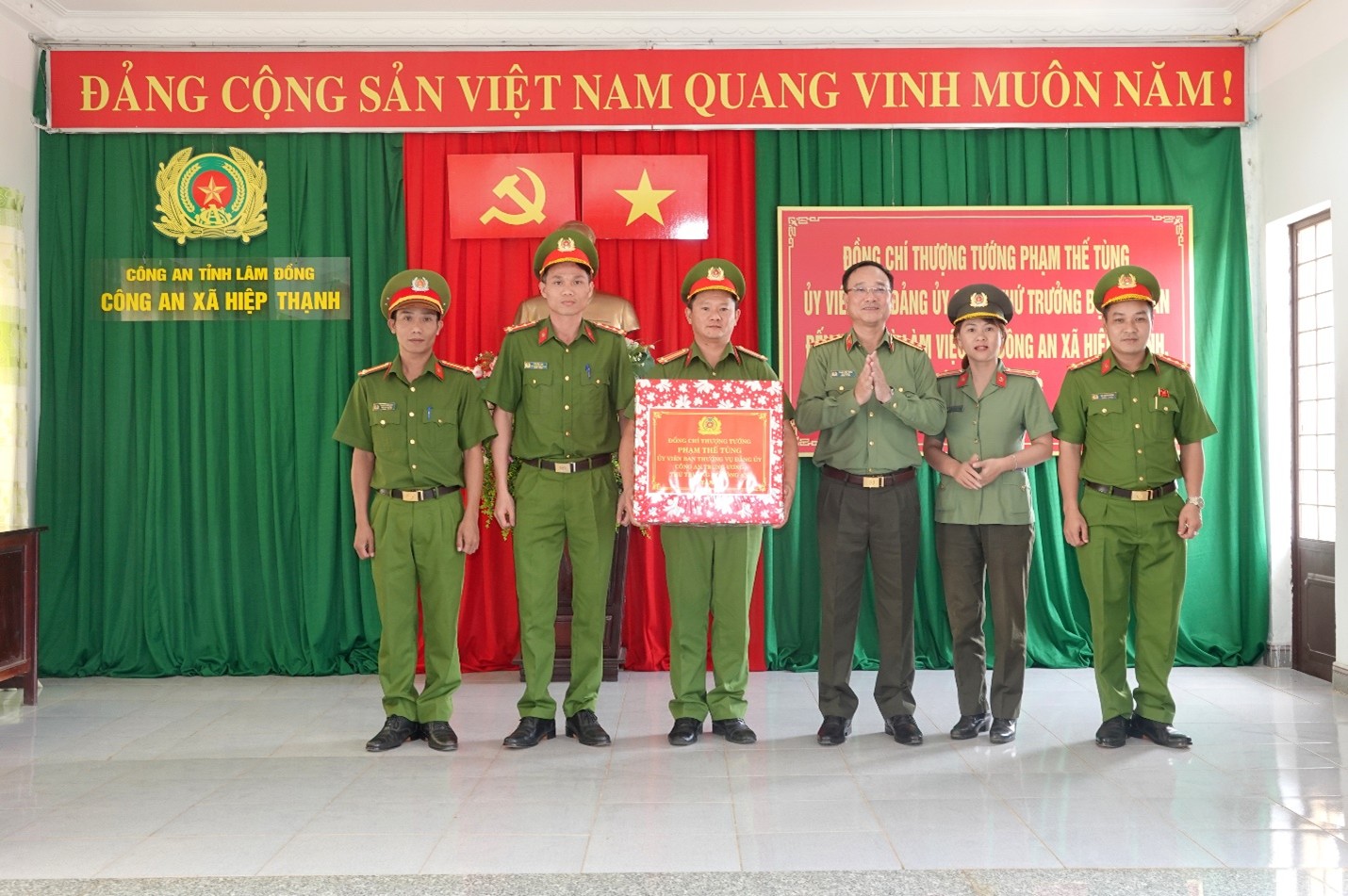 Thượng tướng Phạm Thế Tùng tặng quà cho tập thể CBCS Công an xã Hiệp Thạnh
