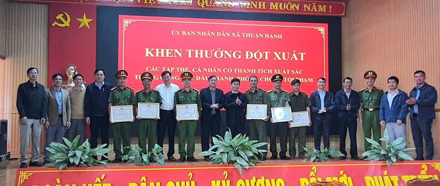 Ngay trong ngày 23/01/2026, Thường trực Đảng ủy xã và Chủ tịch UBND xã Thuận Hạnh đã tổ chức khen thưởng đột xuất đối với các tập thể, cá nhân lập công trong công tác điều tra, phá án, kịp thời trấn áp tội phạm, góp phần giữ vững ổn định an ninh, trật tự trên địa bàn.