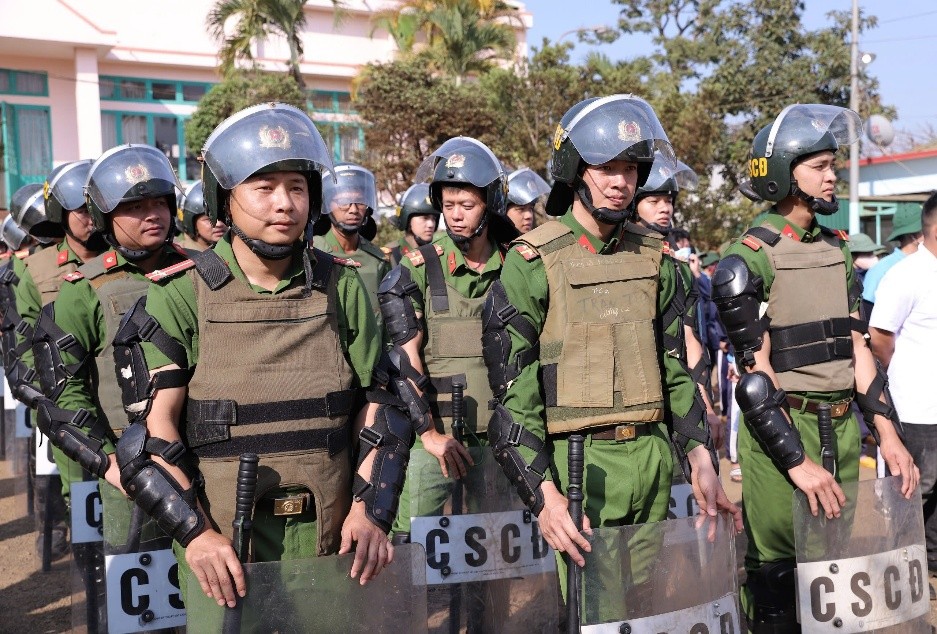 Dưới sự chỉ huy trực tiếp của Chỉ huy cơ sở, các lực lượng đã hiệp đồng chặt chẽ, triển khai đồng bộ các đội hình chiến thuật như: ngăn chặn, chia cắt đám đông, chốt chặn tại các vị trí trọng điểm nhằm cô lập, phân tán các đối tượng quá khích. Quá trình xử lý bảo đảm đúng quy trình, linh hoạt, kiên quyết, đồng thời giữ vững an toàn cho cán bộ, chiến sĩ và học viên.