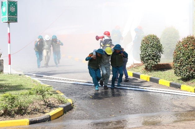 Tình huống giả định được xây dựng sát với thực tế sản xuất: sự cố bục ống sinh hơi tại phân xưởng Nhiệt điện trong quá trình vận hành lò hơi khiến xỉ than văng ra ngoài gây cháy. Đám cháy nhanh chóng lan rộng trên diện tích hơn 500m², phát sinh nhiều khói, khí độc, tiềm ẩn nguy cơ nổ thiết bị. Thời điểm xảy ra sự cố có khoảng 30 công nhân làm việc, trong đó 20 người bị mắc kẹt cần được cứu nạn khẩn cấp.