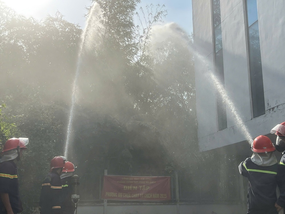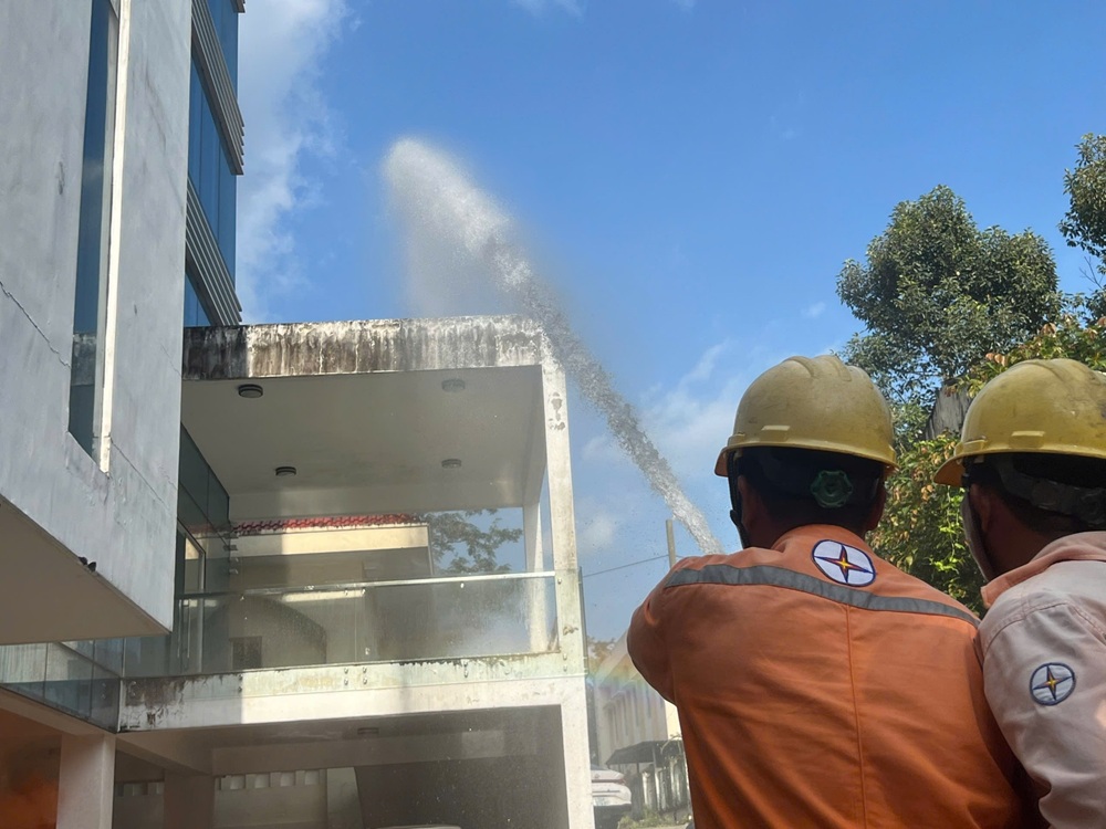 Một số hình ảnh thực tập phương án chữa cháy và cứu nạn cứu hộ tại Đội Quản lý điện Hàm Tân