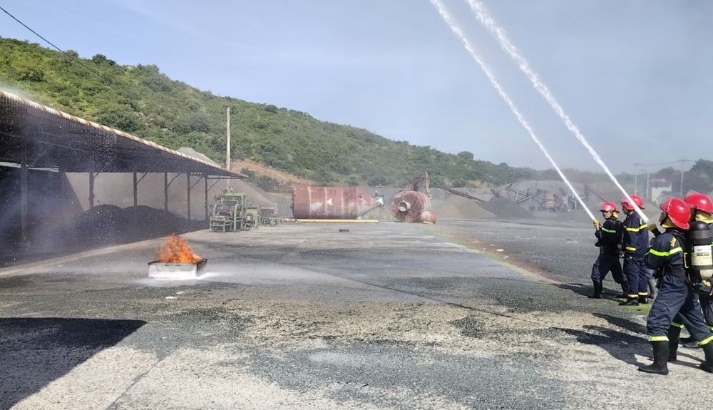 Tình huống giả định đám cháy tại xưởng cơ khí của Xí nghiệp khai thác đá Núi Tào