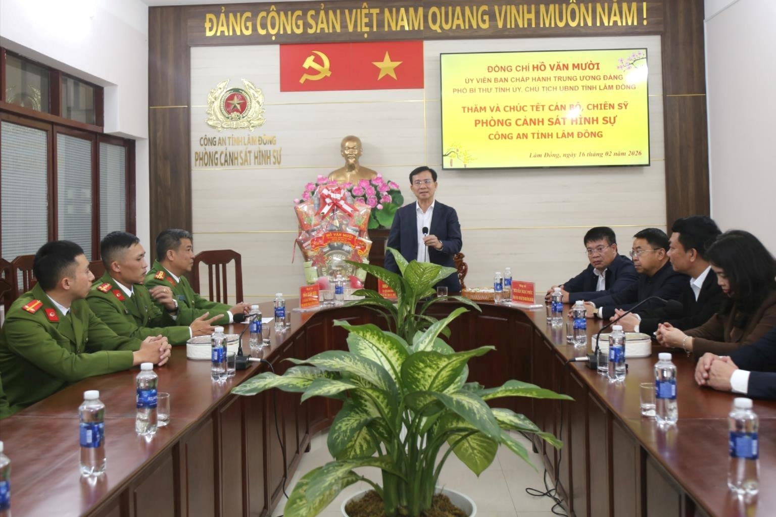 Đồng chí Hồ Văn Mười, Ủy viên Trung ương Đảng, Phó Bí thư Tỉnh ủy, Chủ tịch UBND tỉnh Lâm Đồng thăm, chúc Tết cán bộ, chiến sỹ Phòng Cảnh sát hình sự