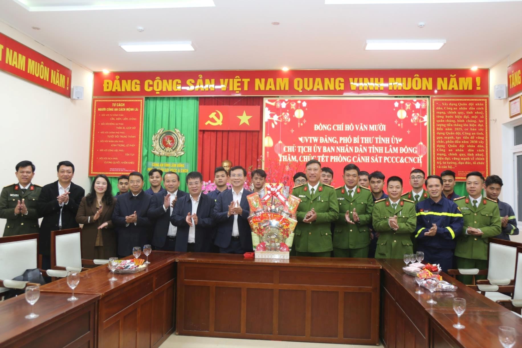 Đồng chí Hồ Văn Mười, Ủy viên Trung ương Đảng, Phó Bí thư Tỉnh ủy, Chủ tịch UBND tỉnh Lâm Đồng thăm, chúc Tết cán bộ, chiến sỹ Phòng Cảnh sát PCCC&CNCH