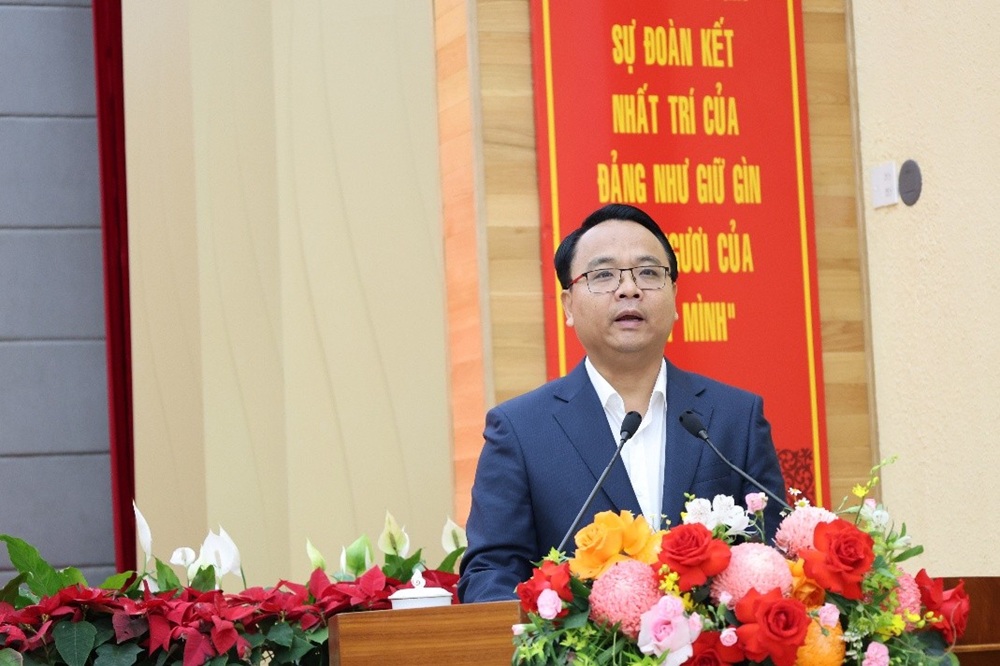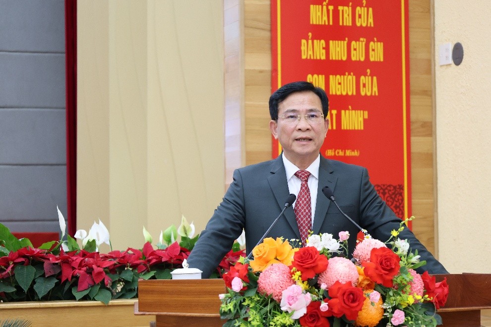 Đồng chí Đặng Hồng Sỹ, Phó Bí thư Thường trực Tỉnh ủy trình bày chuyên đề những nội dung cơ bản, trọng tâm của nghị quyết đại hội đảng bộ tỉnh lần thứ I về công tác xây dựng Đảng và hệ thống chính trị; các nhiệm vụ, giải pháp trong chương trình hành động thực hiện Nghị quyết