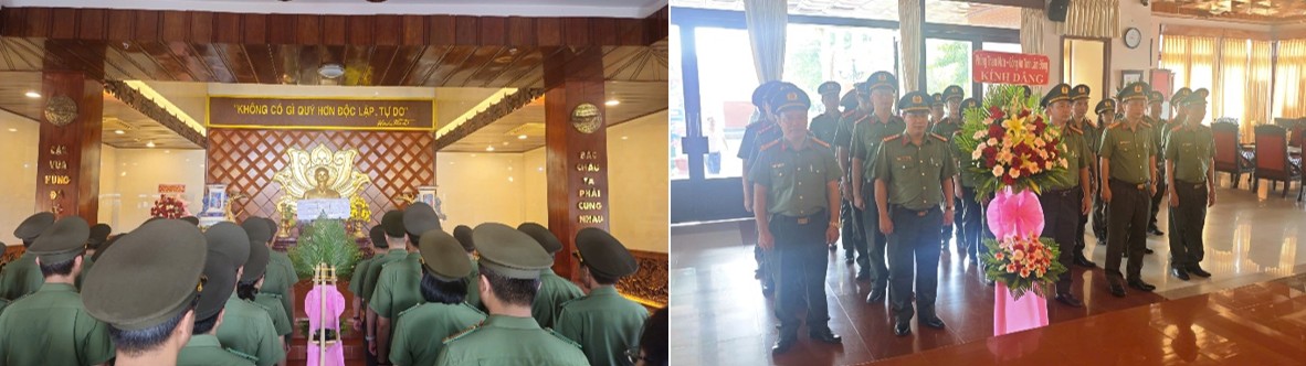 Đoàn đã thành kính tổ chức Lễ dâng hương tại Khu di tích Căn cứ Tỉnh ủy Bình Thuận (Căn cứ Sa Lôn), cùng nhau ôn lại truyền thống đấu tranh cách mạng vẻ vang, tinh thần kiên trung, bất khuất của các thế hệ cha anh đi trước. Tiếp nối hành trình, đoàn đã tổ chức Lễ dâng hương tại Nhà tưởng niệm Chủ tịch Hồ Chí Minh trong khuôn viên Trụ sở Công an tỉnh Lâm Đồng (tại trụ sở 117 Tôn Đức Thắng, phường Phú Thủy). Đây là hoạt động mang ý nghĩa giáo dục chính trị tư tưởng sâu sắc, giúp mỗi CBCS tự soi, tự sửa, nâng cao bản lĩnh chính trị, tinh thần trách nhiệm, sẵn sàng nhận và hoàn thành xuất sắc mọi nhiệm vụ được giao.