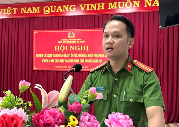 Thiếu tá Hoàng Như Phú, Phó Trưởng Công an phường quán triệt nội dung tại Hội nghị