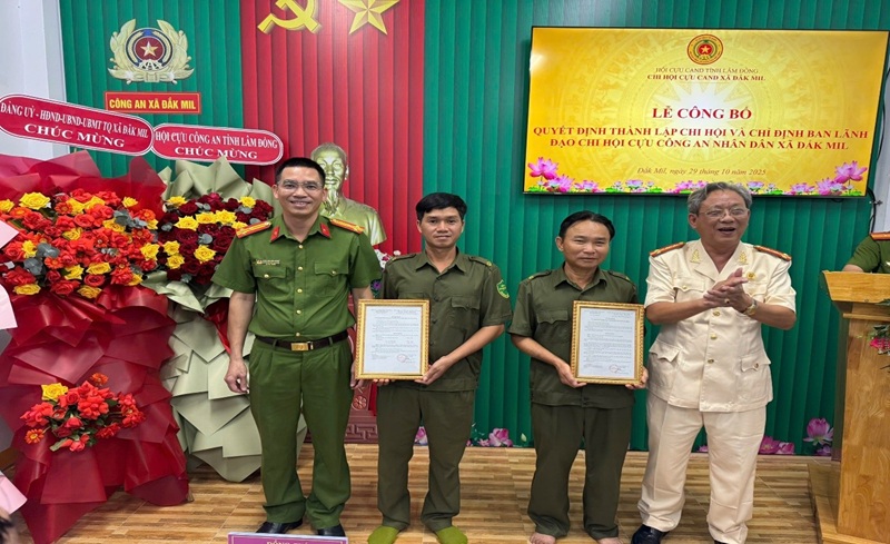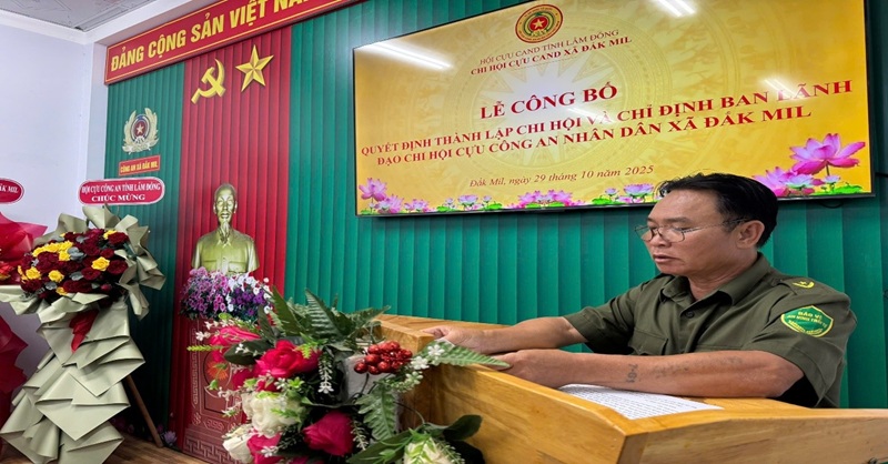 Tại buổi lễ, đồng chí Đại tá Nguyễn Tường Thuật đã công bố Quyết định thành lập Chi hội Cựu Công an nhân dân xã Đắk Mil và trao Quyết định chỉ định Chi hội trưởng, Chi hội phó Chi hội Cựu Công an nhân dân xã. Thay mặt Ban Thường vụ Hội Cựu CAND tỉnh, đồng chí Nguyễn Tường Thuật ghi nhận, đánh giá cao công tác chuẩn bị, xây dựng và thành lập Chi hội, đồng thời giao nhiệm vụ cho Chi hội Cựu CAND xã trong việc phối hợp với Công an xã thực hiện tốt nhiệm vụ tham mưu cho chính quyền địa phương trong công tác bảo đảm an ninh, trật tự trên địa bàn.