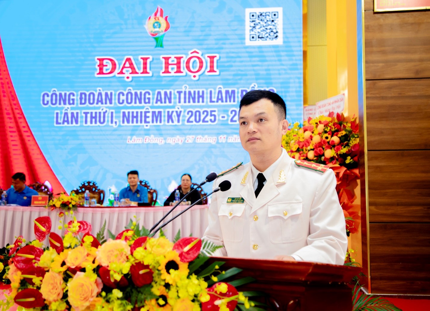 Phát biểu chỉ đạo tại Đại hội, Thượng tá Công Thanh Thảo, Uỷ viên ban chấp hành Tổng Liên đoàn lao động Việt Nam, Trưởng Ban Công đoàn CAND – Bộ Công an đã ghi nhận nỗ lực của Công đoàn Công an Lâm Đồng trong bối cảnh mô hình mới vừa được triển khai, với yêu cầu mới ngày càng cao. Đng chí nhấn mạnh đây là thời điểm tổ chức công đoàn các cấp phải đổi mới mạnh mẽ tư duy, phương thức hoạt động; lấy đoàn viên, người lao động làm trung tâm; tăng cường vai trò bảo vệ quyền lợi hợp pháp, chính đáng của lao động trong lực lượng CAND; đẩy mạnh chuyển đổi số và nâng cao chất lượng đội ngũ cán bộ công đoàn, nhất là ở công đoàn cơ sở.