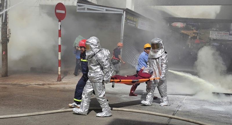 Sau khi nhận được tin báo, Phòng Cảnh sát PCCC và CNCH đã huy động 07 xe chuyên dụng gồm: 01 xe chỉ huy, 01 xe CNCH, 01 xe thang, 01 xe cứu thương, 03 xe chữa cháy cùng 40 cán bộ, chiến sĩ đến hiện trường triển khai nhiệm vụ chữa cháy và cứu nạn, cứu hộ theo đúng kịch bản. Buổi thực tập diễn ra an toàn tuyệt đối, đảm bảo đúng kỹ - chiến thuật, đạt hiệu quả cao trong tuyên truyền và rèn luyện nghiệp vụ.