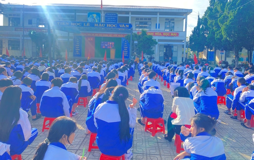 Toàn cảnh buổi tuyên truyền tại Trường THCS Hùng Vương