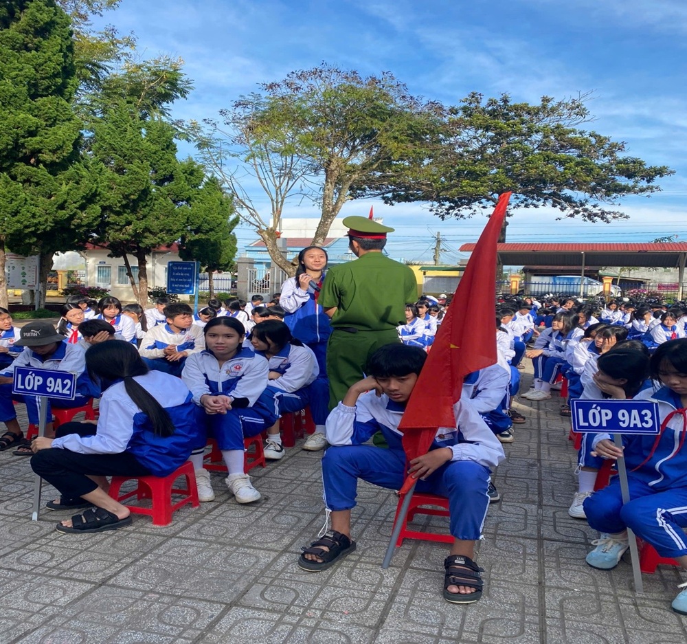 Trong nội dung phòng chống bạo lực học đường, Công an xã đưa ra các tình huống thực tế, phân tích nguyên nhân – hậu quả, nhắc nhở học sinh tránh xa hành vi kích động, quay clip đánh nhau, chia sẻ hình ảnh nhạy cảm của bạn bè; khuyến khích nhà trường và gia đình phối hợp giải quyết mâu thuẫn nhẹ nhàng, tuyệt đối không để mạng xã hội trở thành nơi xung đột.