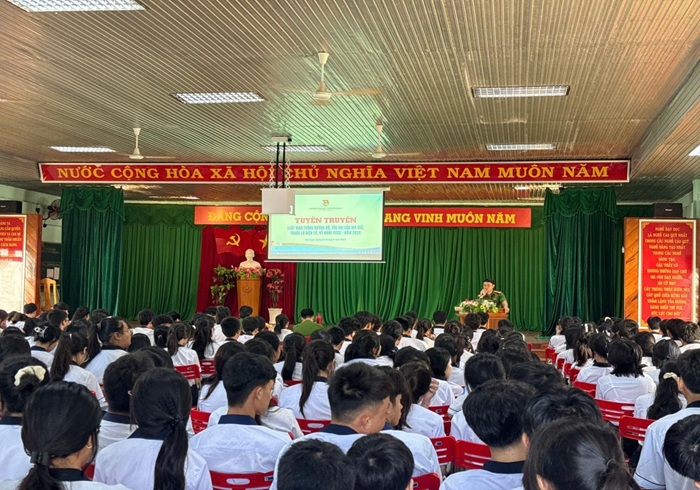 Công an đặc khu Phú Quý tổ chức tuyên truyền tại Trường THPT Ngô Quyền, ngày 29/8/2025