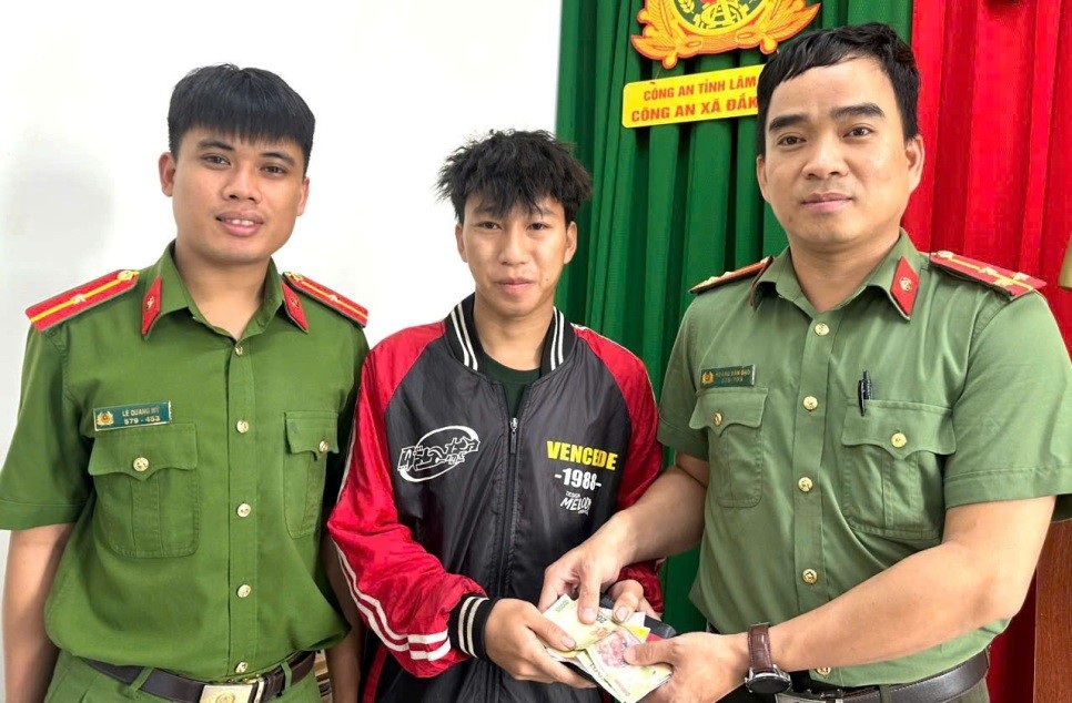 Cán bộ chiến sĩ Tổ Tổng hợp phối hợp xác minh, trao trả tài sản bị đánh rơi cho người dân