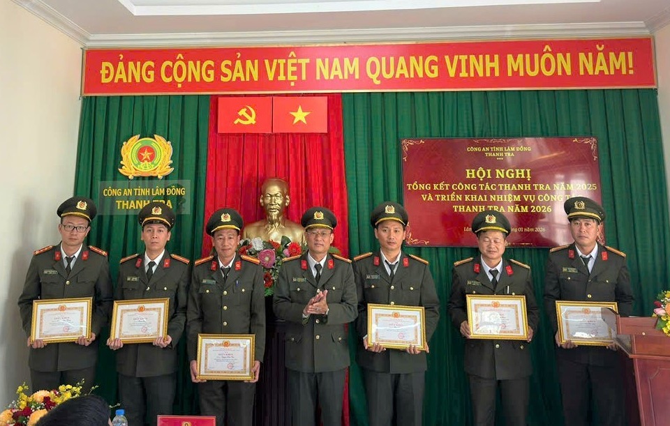 Tại Hội nghị, các đại biểu đã thảo luận thẳng thắn về những tồn tại, khó khăn, đồng thời đề xuất nhiều giải pháp để nâng cao hiệu quả công tác thanh tra trong năm 2026. Dịp này, lãnh đạo Công an tỉnh đã trao Huy chương Vì An ninh Tổ quốc, Huy chương Chiến sĩ vẻ vang cho 06 cá nhân; 01 tập thể cấp đội được công nhận Đơn vị Quyết thắng và 07 cá nhân đạt danh hiệu Chiến sĩ thi đua cơ sở.