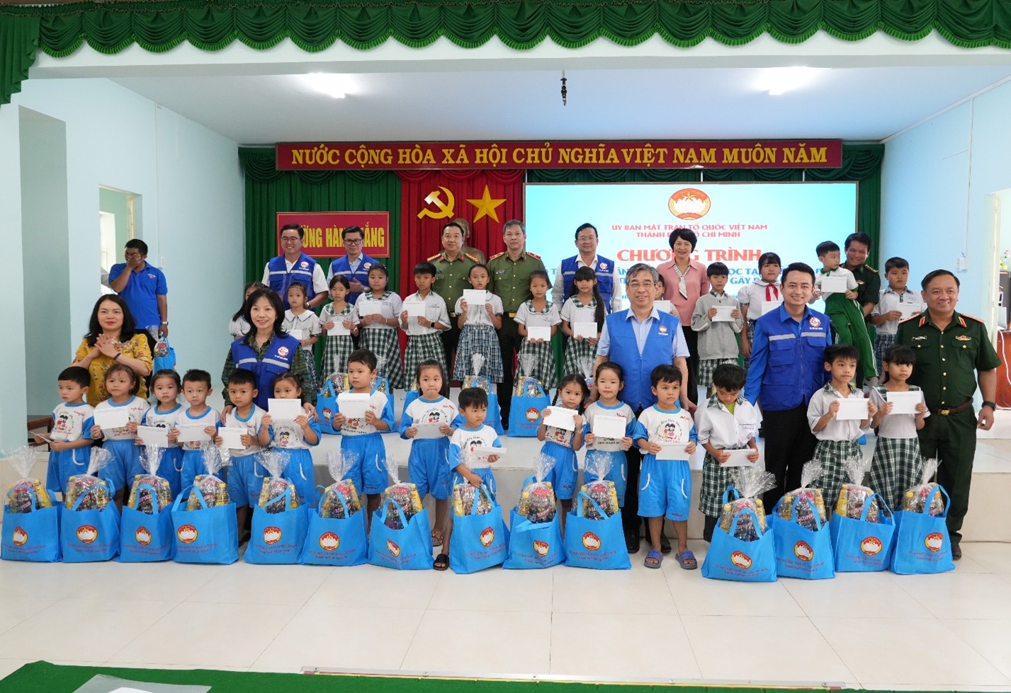 Tặng quà cho các em học sinh