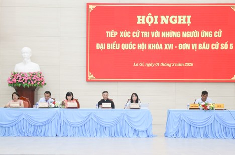 Sáng 01/3, tại phường La Gi, Ủy ban MTTQ Việt Nam tỉnh Lâm Đồng tổ chức Hội nghị tiếp xúc cử tri với người ứng cử ĐBQH khóa XVI, nhiệm kỳ 2026 – 2031. Hội nghị được truyền trực tiếp đến các điểm cầu thuộc Đơn vị bầu cử số 5 gồm xã Tân Hải và xã Hàm Tân, với sự tham dự của lãnh đạo địa phương và đông đảo cử tri.