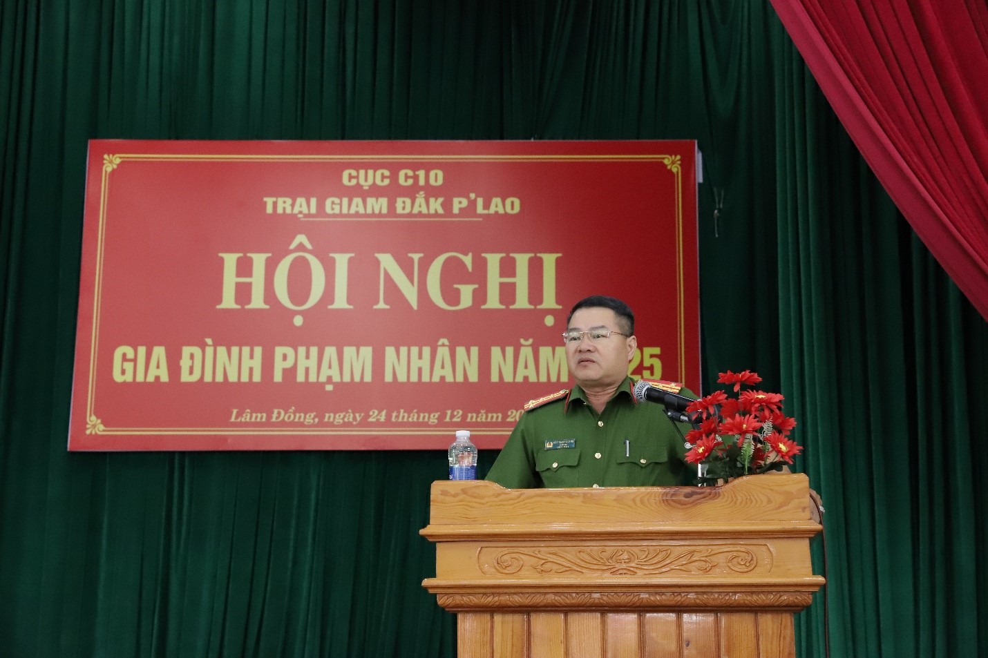 Phát biểu tại hội nghị, Đại tá Đào Thanh Quang, Giám thị Trại giam Đắk P’Lao nhấn mạnh, hội nghị gia đình phạm nhân được tổ chức định kỳ hàng năm là một hoạt động có ý nghĩa nhân văn sâu sắc, nhằm tăng cường kết nối phạm nhân với gia đình, giúp gắn kết giữa các thành viên, tạo không gian để phạm nhân và gia đình gặp gỡ, giúp phạm nhân có thêm động lực tinh thần, ý thức trách nhiệm với gia đình và xã hội, từ đó nỗ lực học tập, lao động và cải tạo tốt hơn. Đại tá Đào Thanh Quang cũng mong muốn thân nhân, gia đình phạm nhân sẽ tiếp tục đồng hành, động viên, khích lệ để người thân, con em của mình an tâm học tập, cải tạo tốt, sửa chữa sai lầm và sớm được trở về đoàn tụ với gia đình, trở thành người công dân có ích cho xã hội.